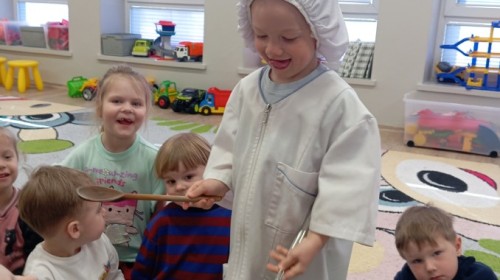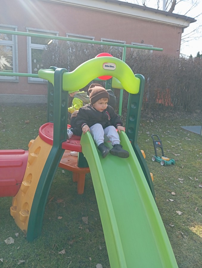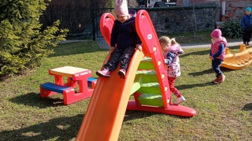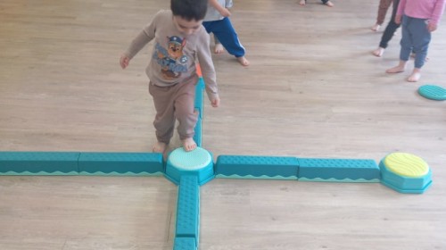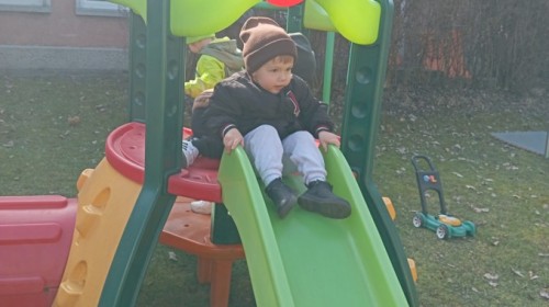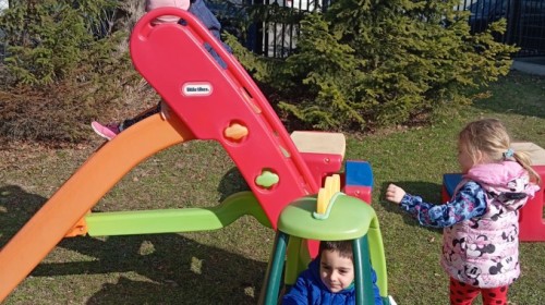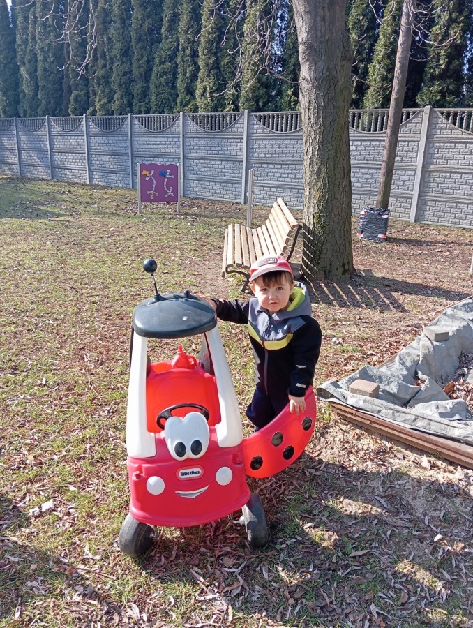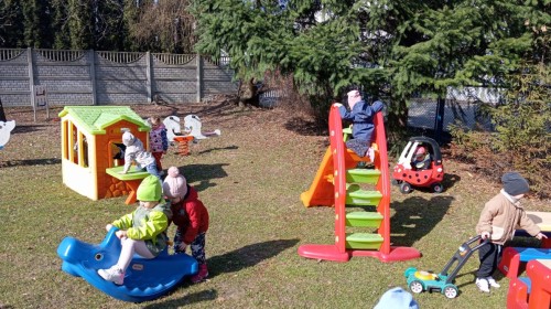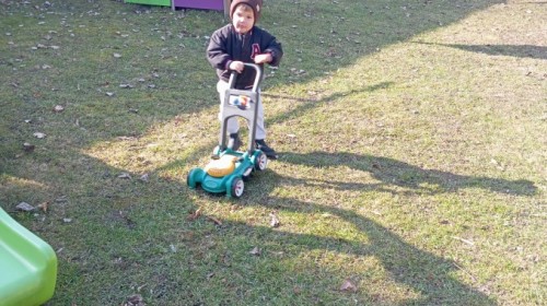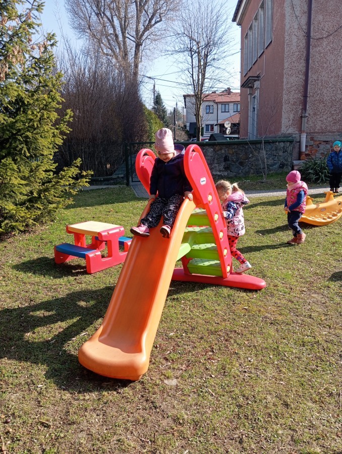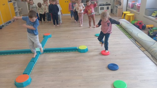 Pani zorganizowała nam tor przeszkód w sali i w ogrodzie.