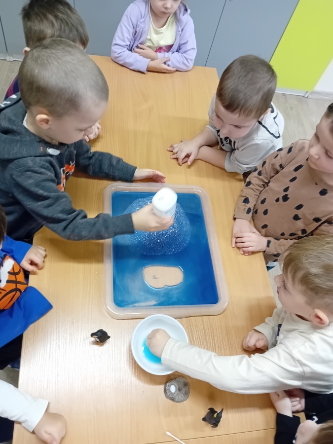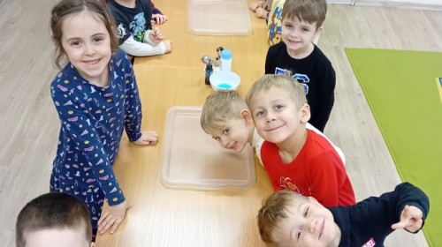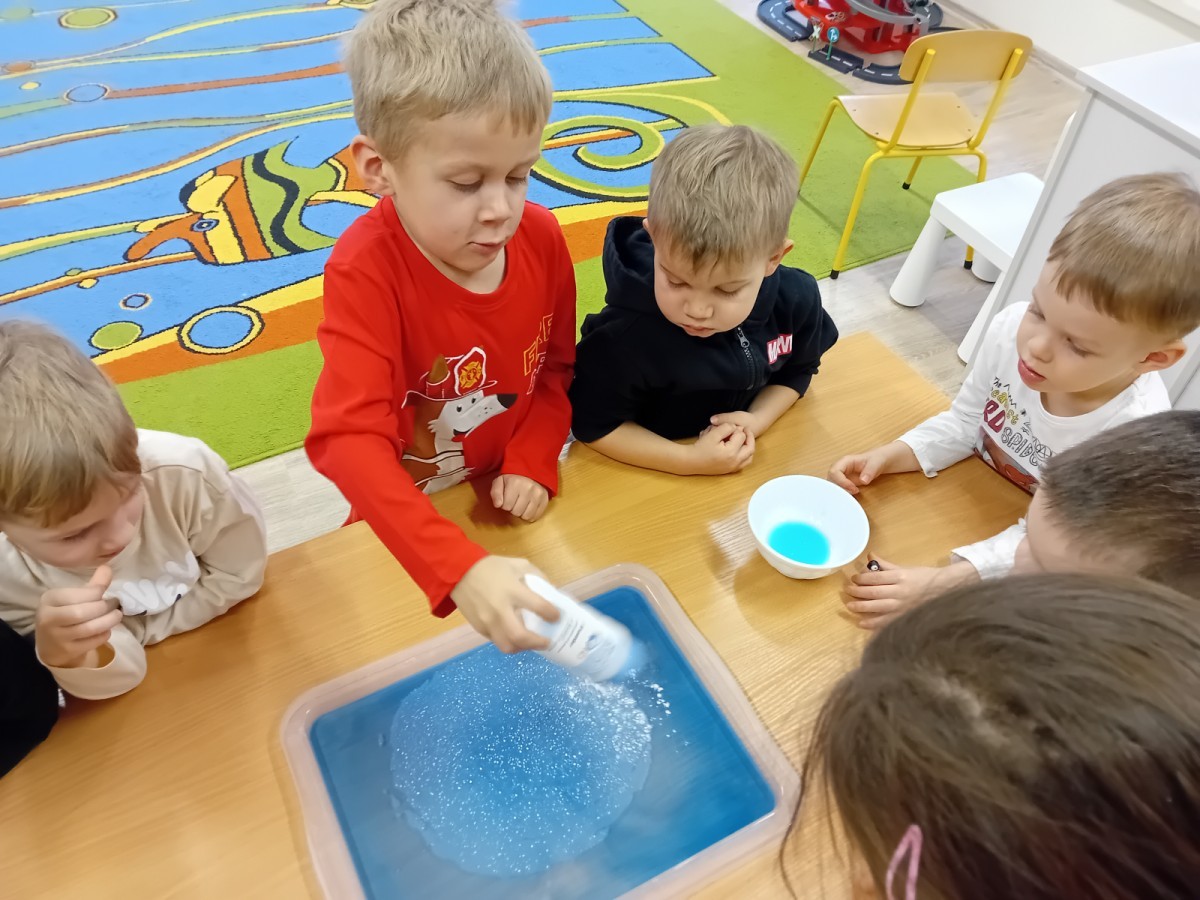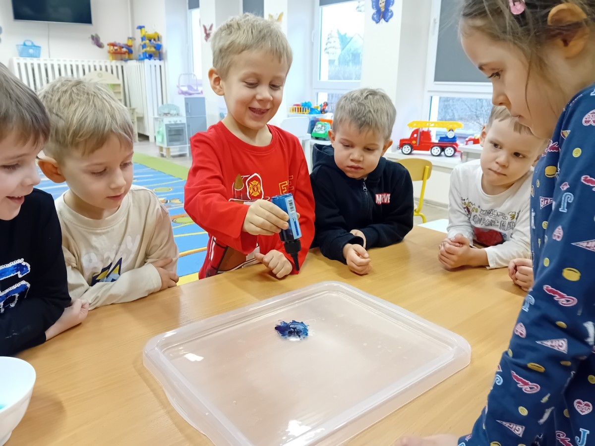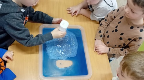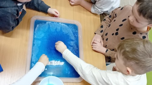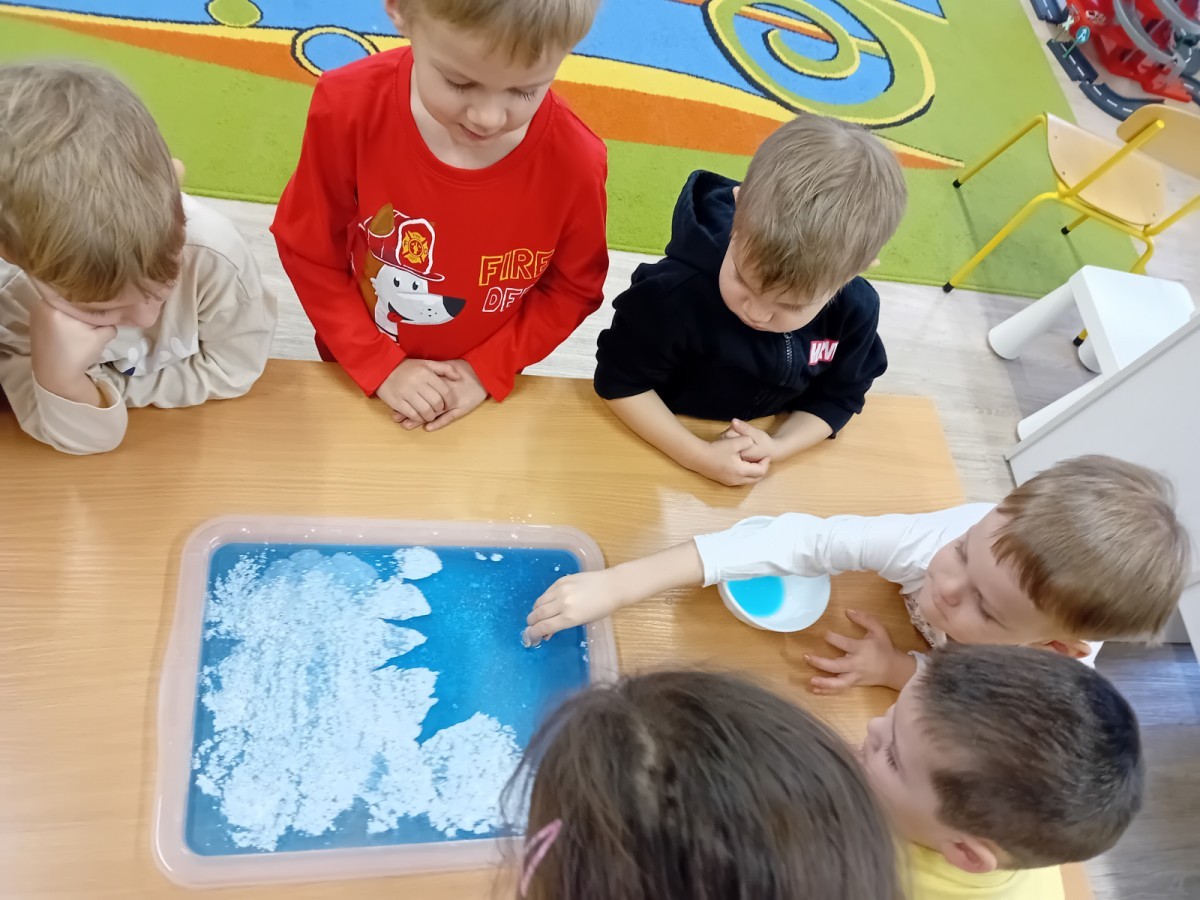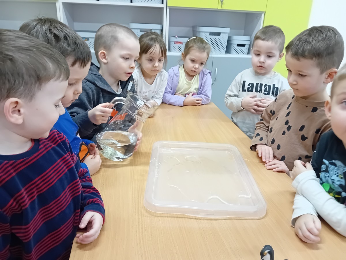 Dziś Nasze przedszkole zamieniło się w mroźną, ale pełną przygód Lodową Krainę. Naszą przygodę rozpoczęliśmy od ważnych badań geograficznych. Dzieci miały okazję dokładnie przyjrzeć się globusowi i dowiedzieć się, że nasza planeta ma dwa bardzo zimne „czubki”. Największą atrakcją były jednak nasze eksperymenty sensoryczne. Zamiast tylko opowiadać o lodzie, postanowiliśmy stworzyć go sami w bardzo nietypowy sposób- zbudowaliśmy własną krę! Na twarzach przedszkolaków było mnóstwo uśmiechu i zdziwienia!