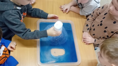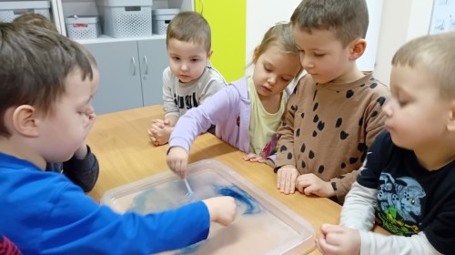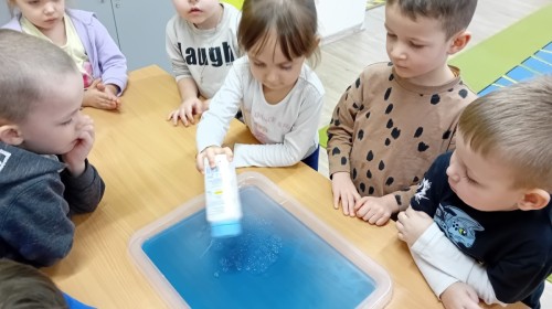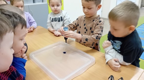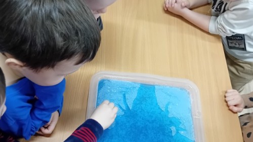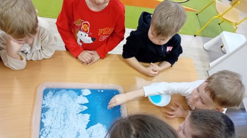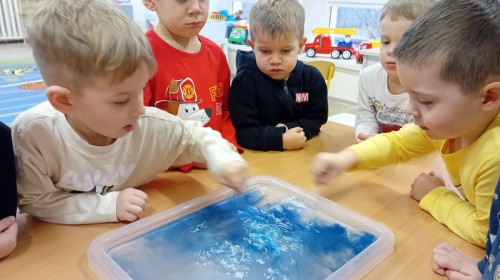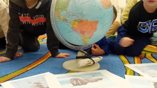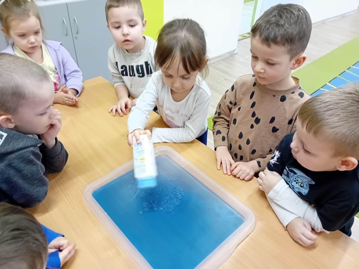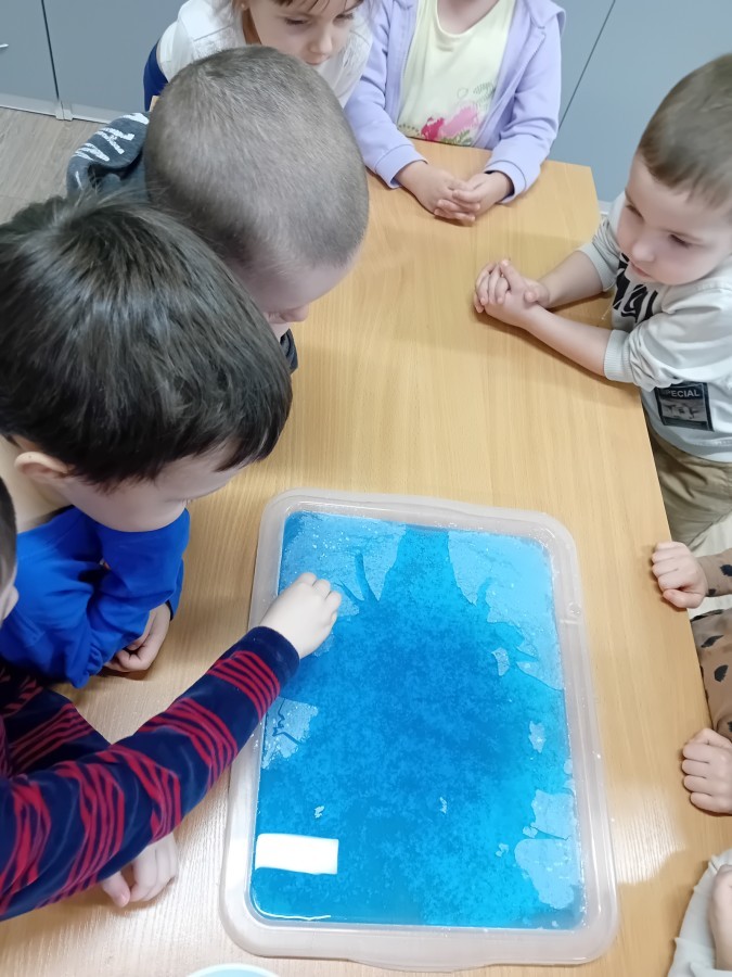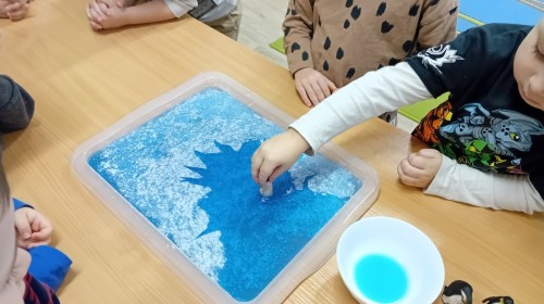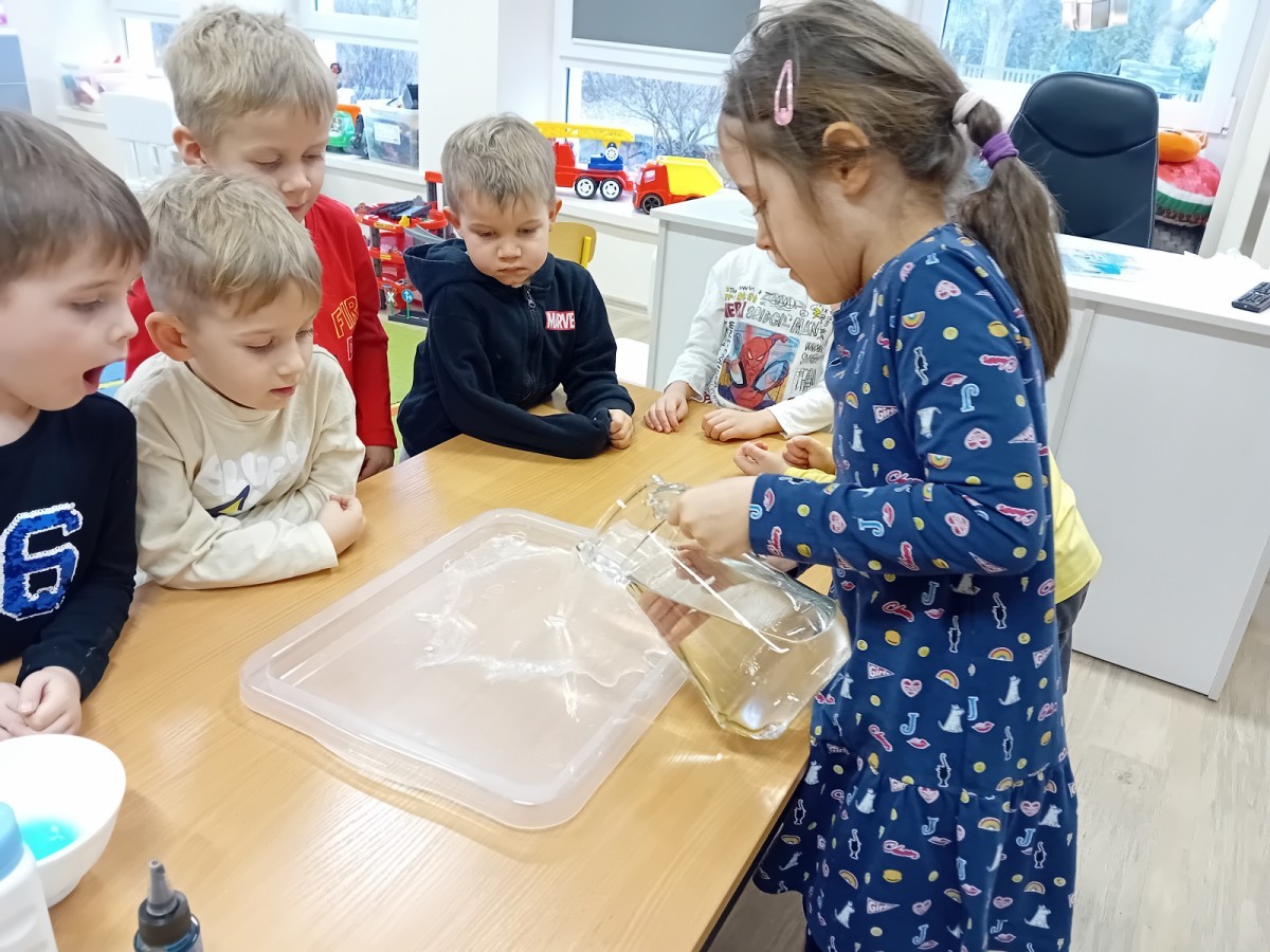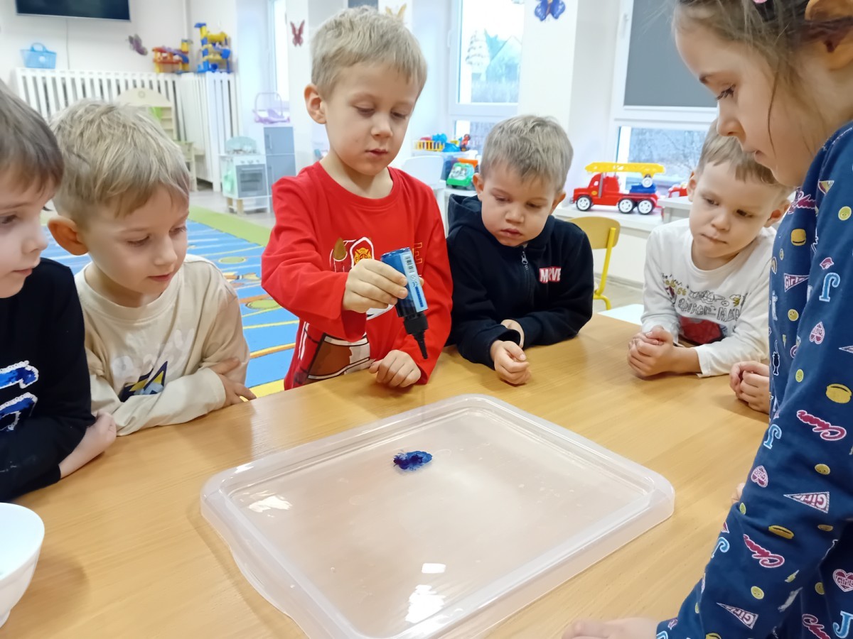 Dziś Nasze przedszkole zamieniło się w mroźną, ale pełną przygód Lodową Krainę. Naszą przygodę rozpoczęliśmy od ważnych badań geograficznych. Dzieci miały okazję dokładnie przyjrzeć się globusowi i dowiedzieć się, że nasza planeta ma dwa bardzo zimne „czubki”. Największą atrakcją były jednak nasze eksperymenty sensoryczne. Zamiast tylko opowiadać o lodzie, postanowiliśmy stworzyć go sami w bardzo nietypowy sposób- zbudowaliśmy własną krę! Na twarzach przedszkolaków było mnóstwo uśmiechu i zdziwienia!