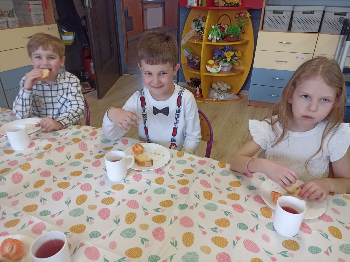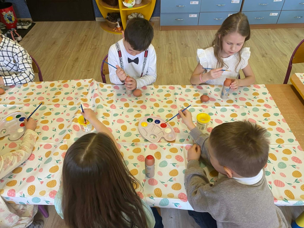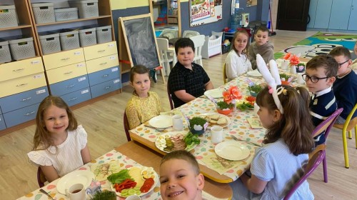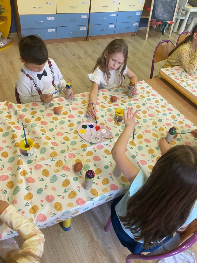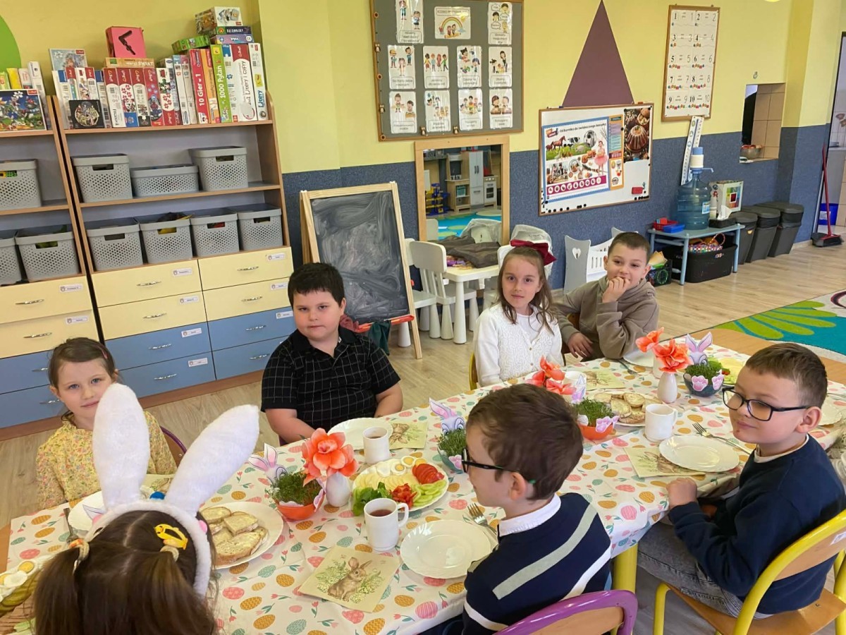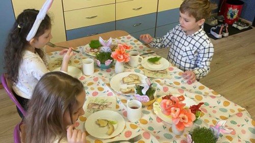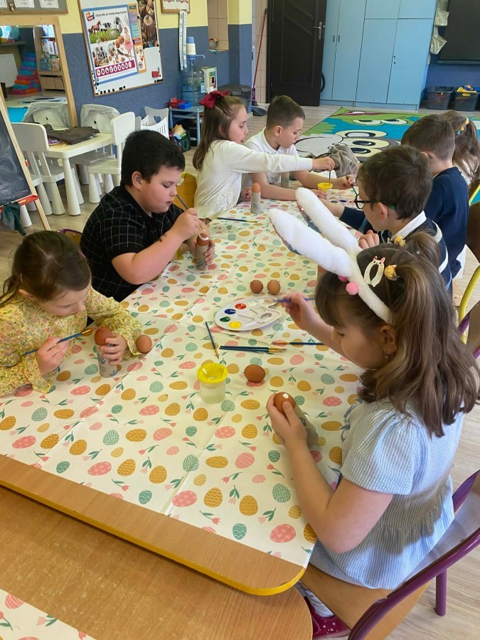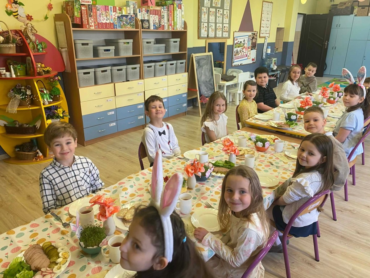 Śniadanie wielkanocne w przedszkolu to był radosny czas pełen tradycji i wspólnego świętowania. Dzieci zasiadły do przystrojonego do stołu, na którym znajdywały się świąteczne potrawy takie jak jajka czy rzeżucha. Po posiłku starszaki z entuzjazmem przystąpiły do malowania jajek, które zabrały do domu wraz z wcześniej wychodowaną rzeżuchą :)
