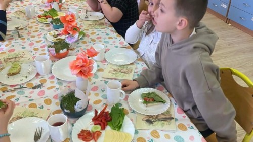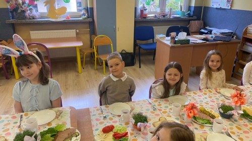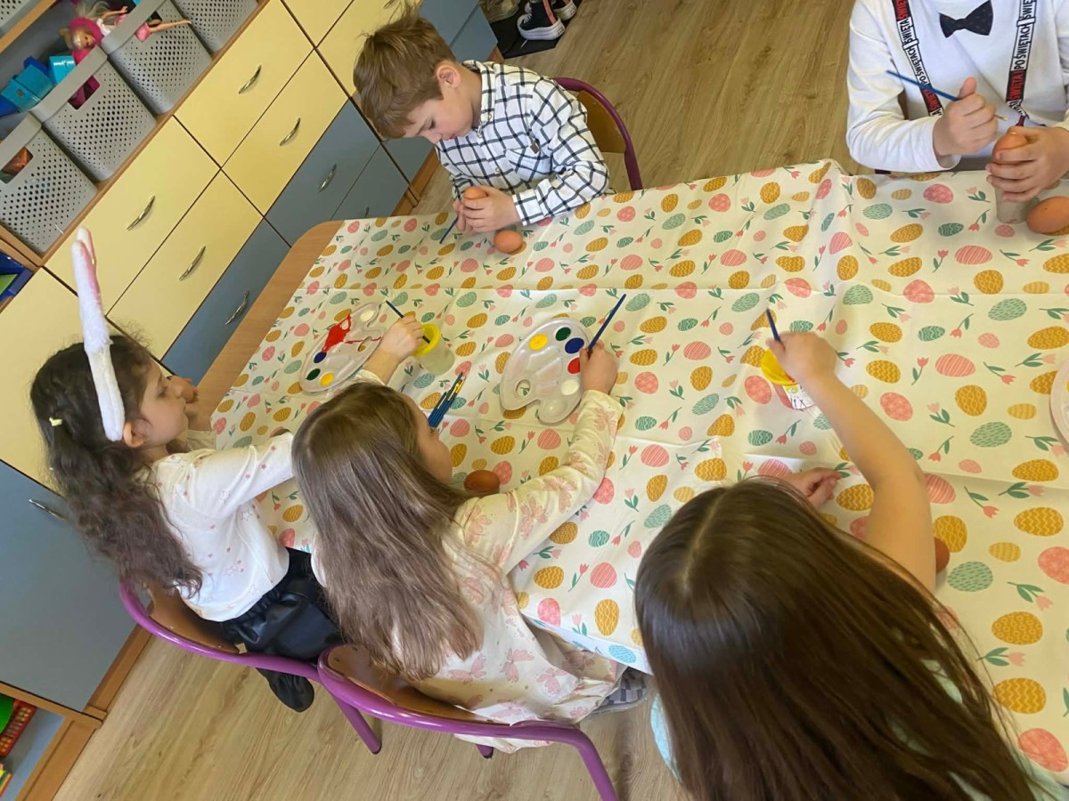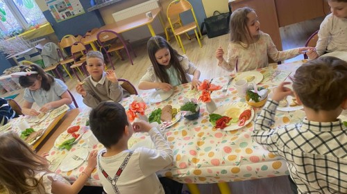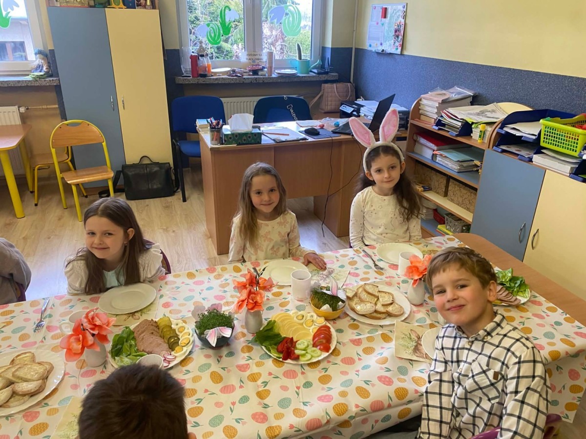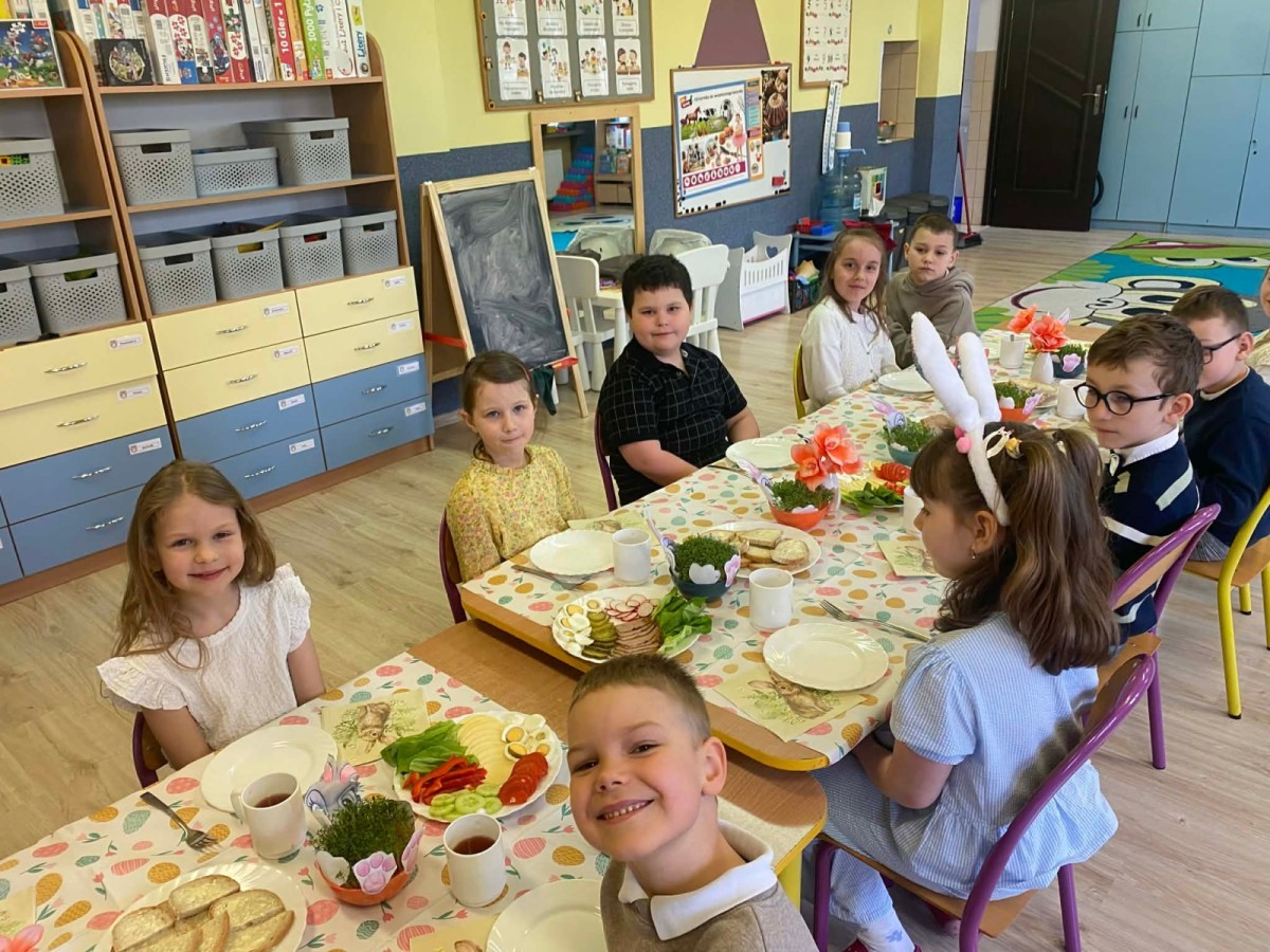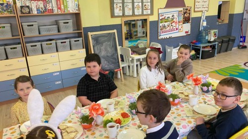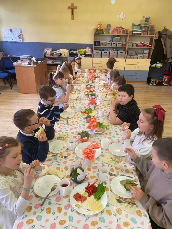 Śniadanie wielkanocne w przedszkolu to był radosny czas pełen tradycji i wspólnego świętowania. Dzieci zasiadły do przystrojonego do stołu, na którym znajdywały się świąteczne potrawy takie jak jajka czy rzeżucha. Po posiłku starszaki z entuzjazmem przystąpiły do malowania jajek, które zabrały do domu wraz z wcześniej wychodowaną rzeżuchą :)