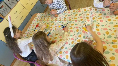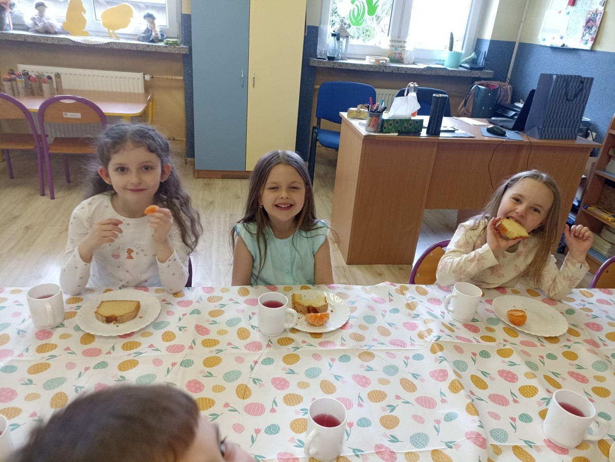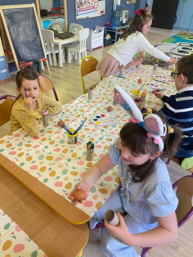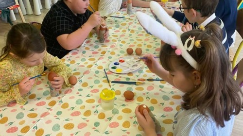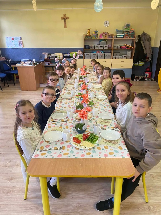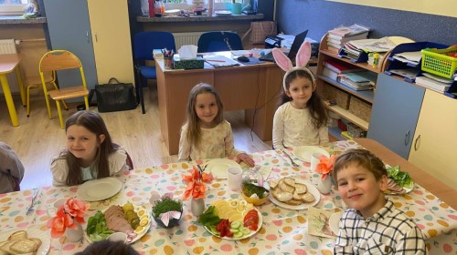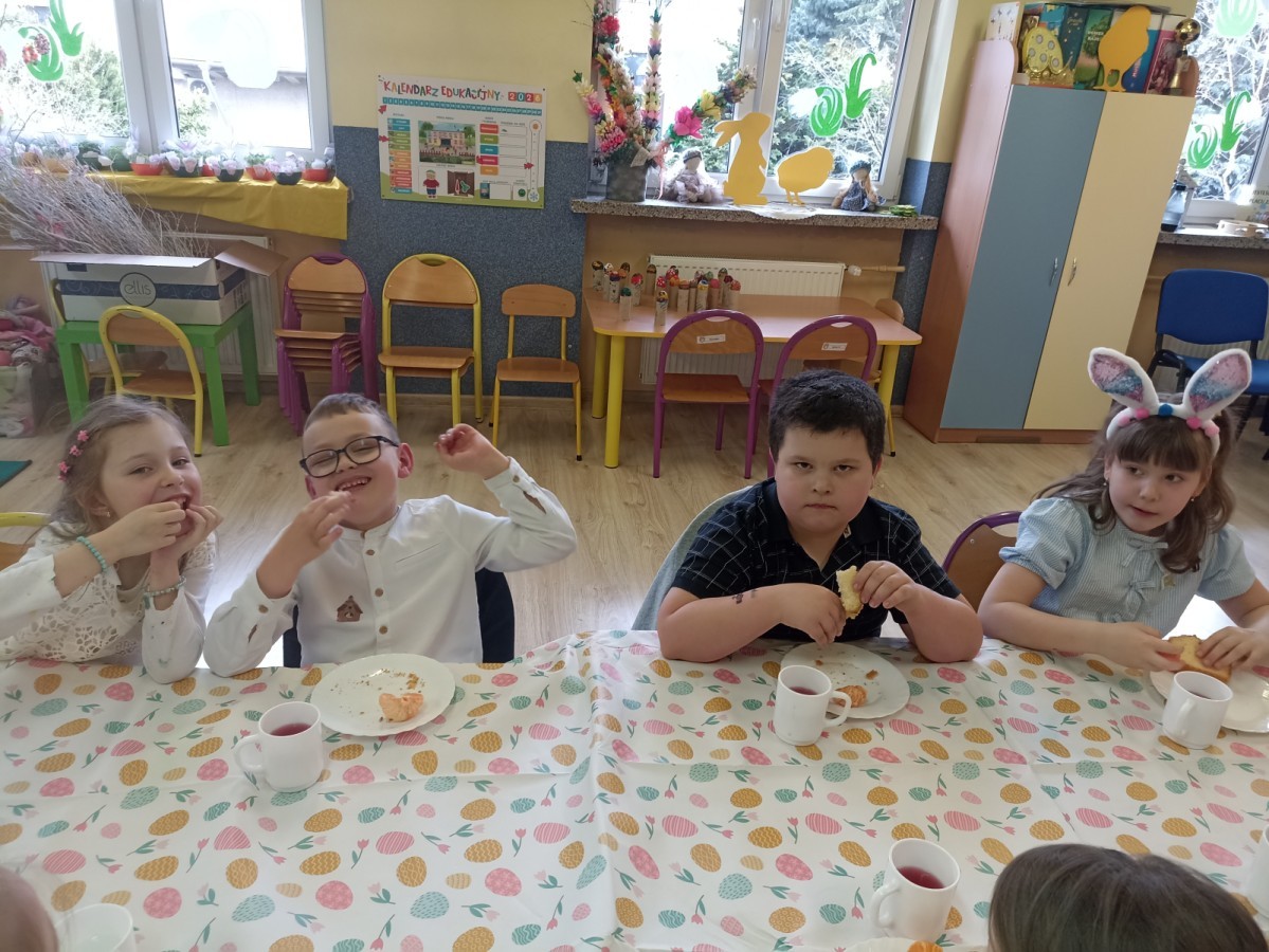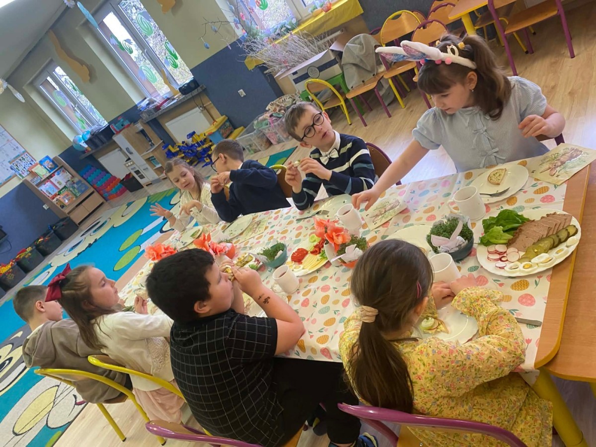 Śniadanie wielkanocne w przedszkolu to był radosny czas pełen tradycji i wspólnego świętowania. Dzieci zasiadły do przystrojonego do stołu, na którym znajdywały się świąteczne potrawy takie jak jajka czy rzeżucha. Po posiłku starszaki z entuzjazmem przystąpiły do malowania jajek, które zabrały do domu wraz z wcześniej wychodowaną rzeżuchą :)