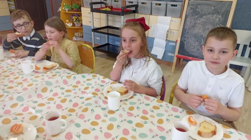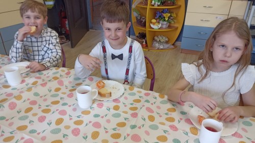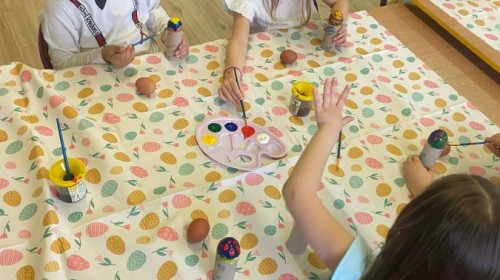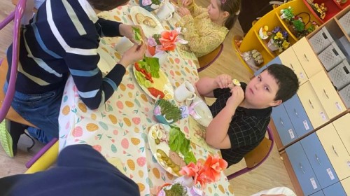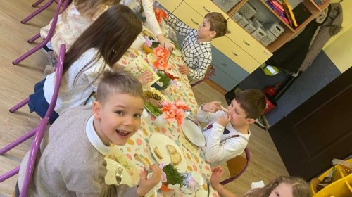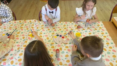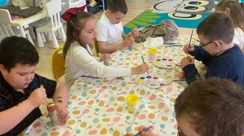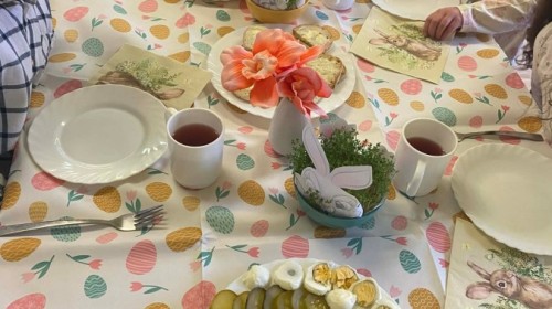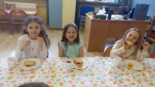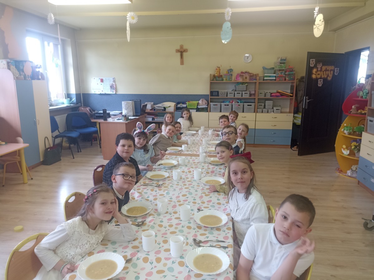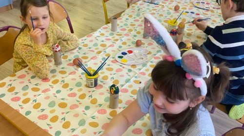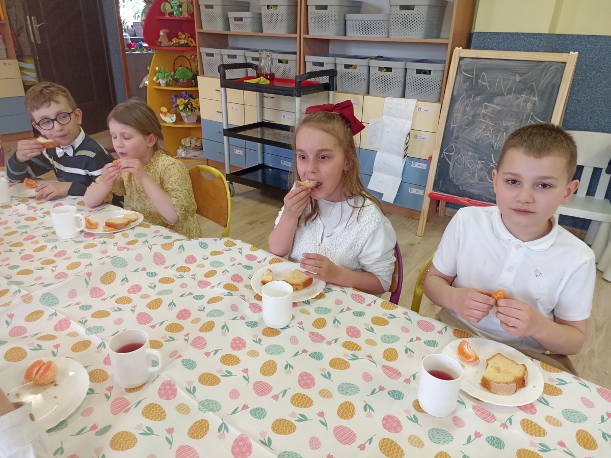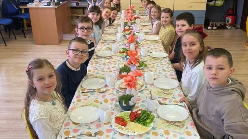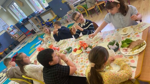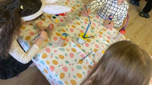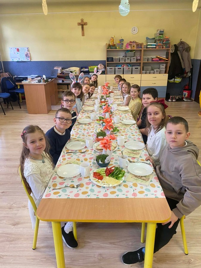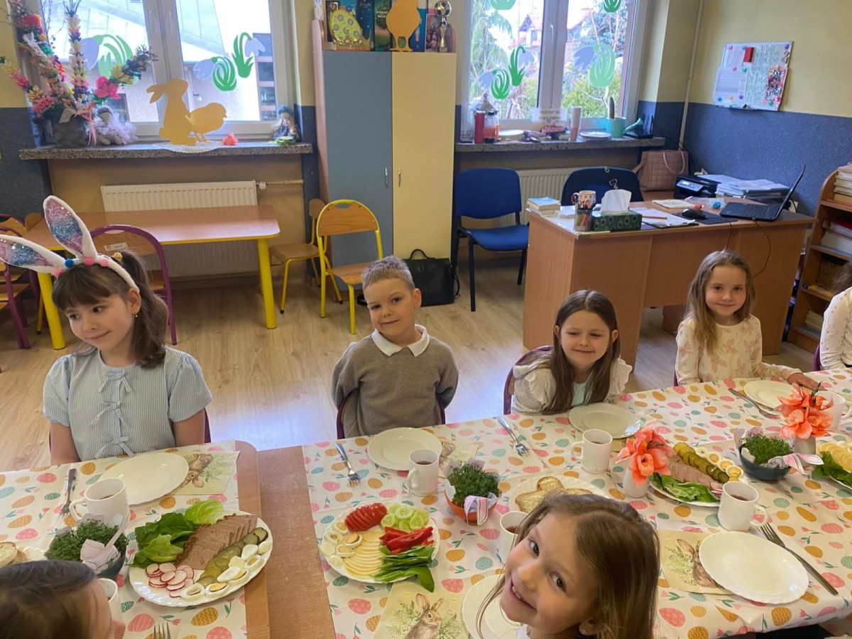 Śniadanie wielkanocne w przedszkolu to był radosny czas pełen tradycji i wspólnego świętowania. Dzieci zasiadły do przystrojonego do stołu, na którym znajdywały się świąteczne potrawy takie jak jajka czy rzeżucha. Po posiłku starszaki z entuzjazmem przystąpiły do malowania jajek, które zabrały do domu wraz z wcześniej wychodowaną rzeżuchą :)