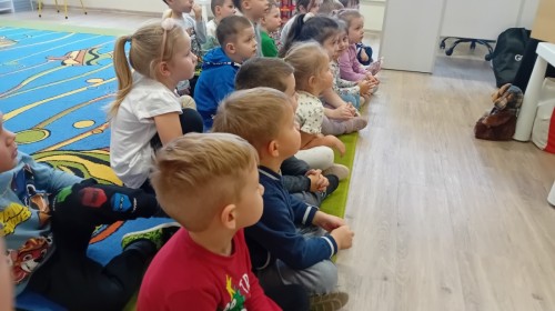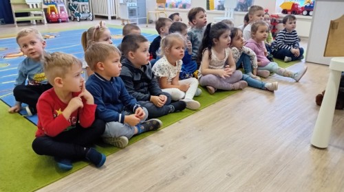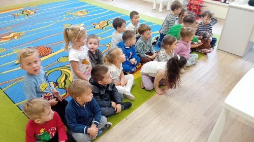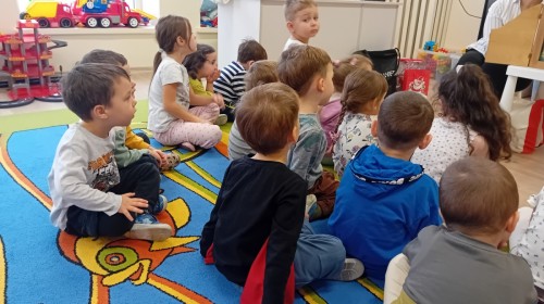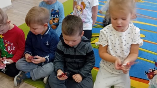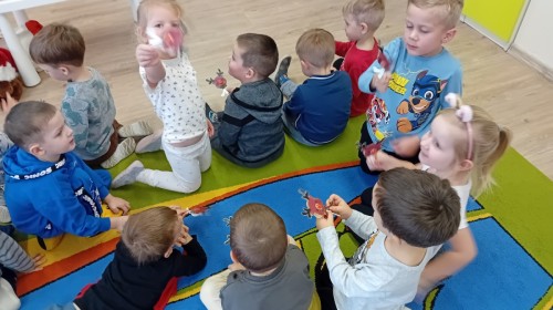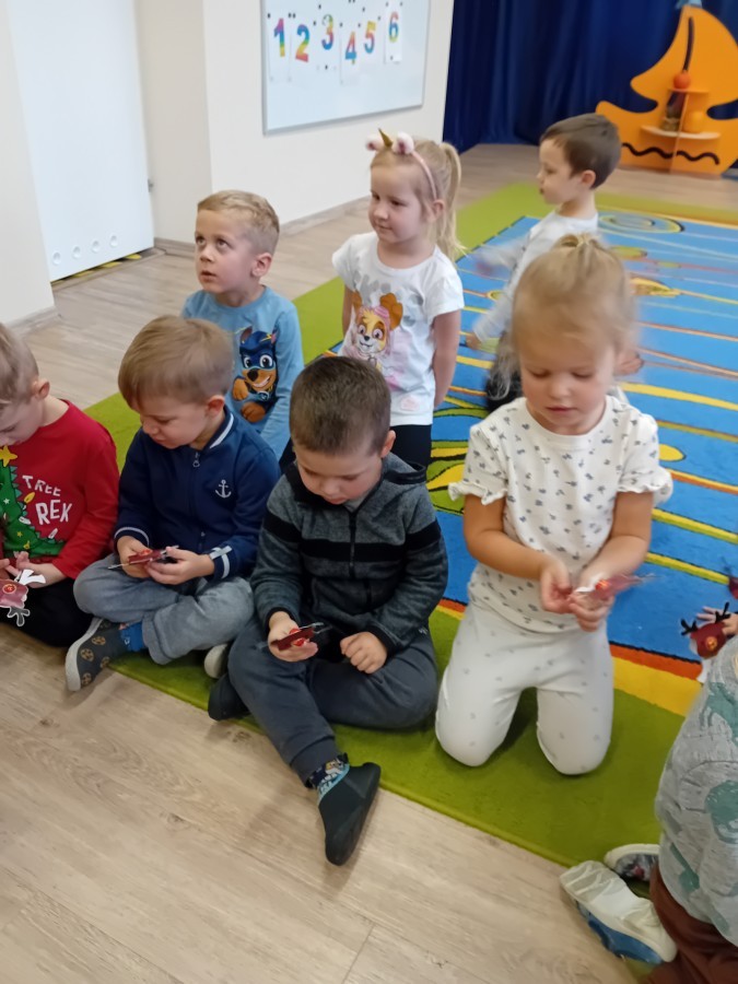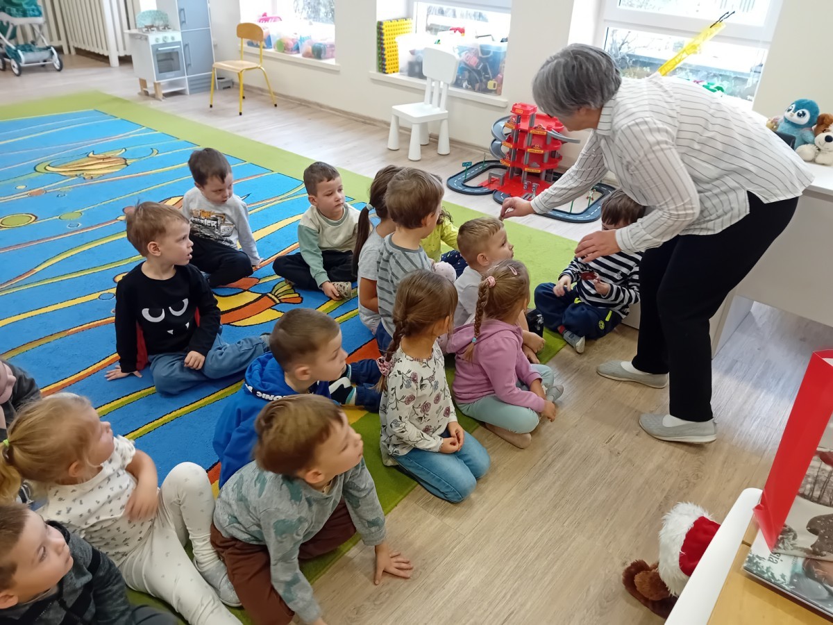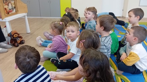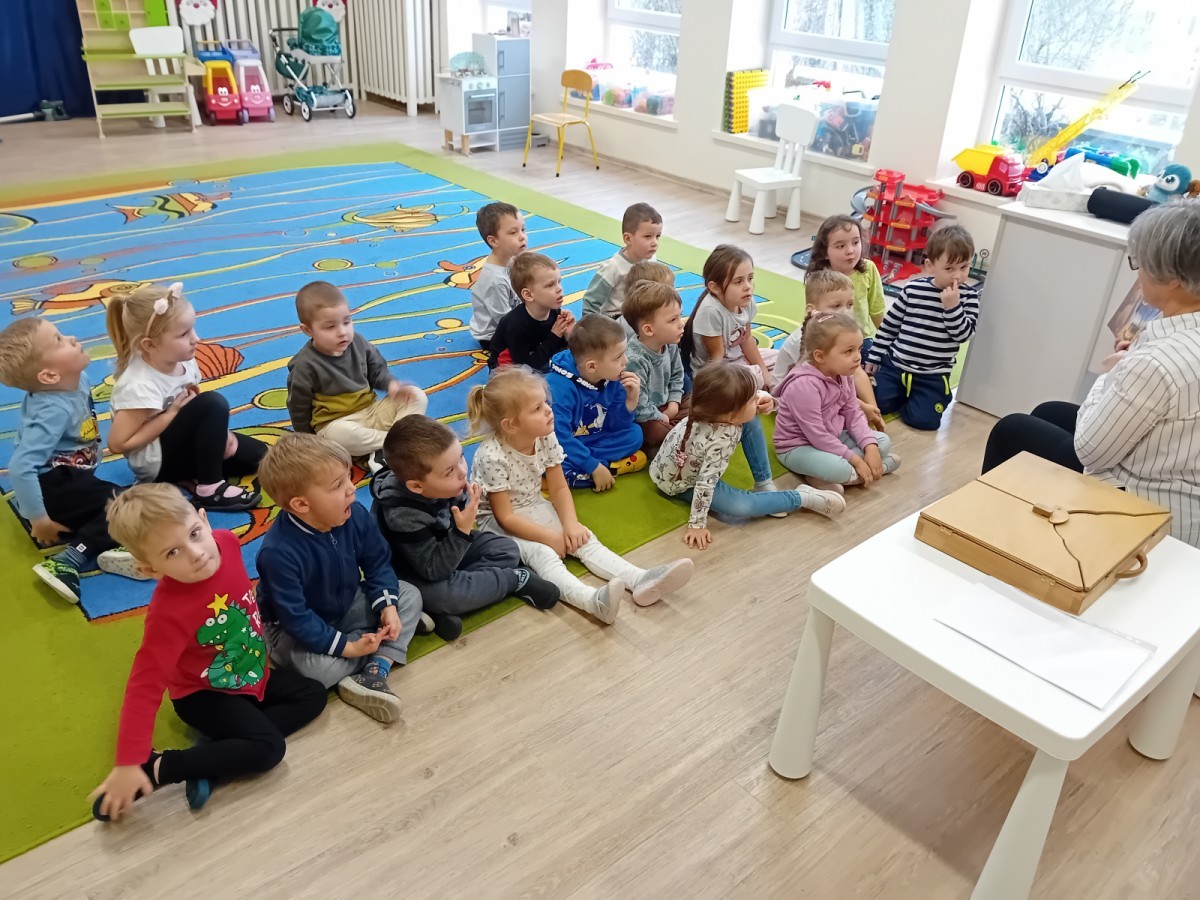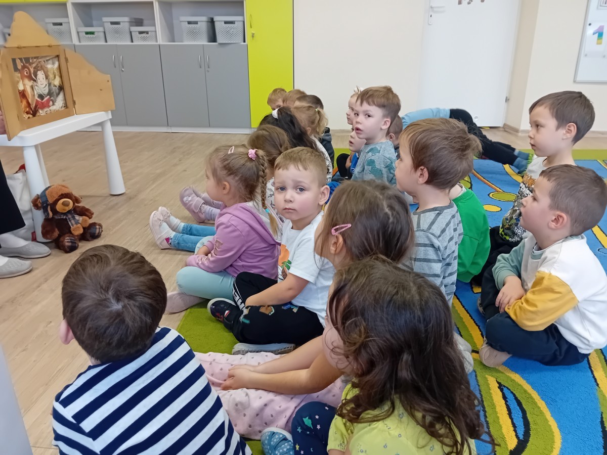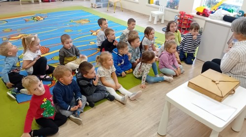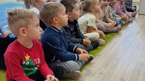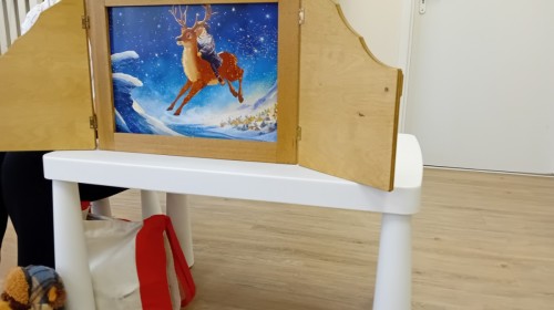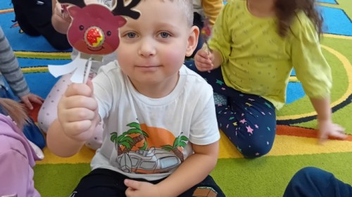 Dziś nasze przedszkole odwiedził wyjątkowy i znany już Przedszkolakom gość- Pani z Biblioteki, która przywiozła ze sobą prawdziwy teatrzyk kamishibai. Dzieci miały okazję wysłuchać pięknej, świątecznej opowieści „Jelonek Lucek i sanie Świętego Mikołaja”. Drewniana skrzynka kamishibai od razu wzbudziła ogromną ciekawość. Gdy tylko otworzyły się jej drzwiczki, wszystkie dzieci z zapartym tchem obserwowały kolejne ilustracje i słuchały historii o małym jelonku Lucku, który marzył, by pomóc Mikołajowi w dostarczaniu prezentów. Dzieci aktywnie uczestniczyły w czytaniu – odpowiadały na pytania, komentowały przygody Lucka i z zaciekawieniem śledziły, czy uda mu się spełnić swoje największe marzenie. Atmosfera była pełna ciepła, magii i świątecznego nastroju. Na zakończenie każdy przedszkolak otrzymal słodki upominek- reniferka z ukrytym lizakiem. Dziękujemy bardzo za wspaniałą wizytę.