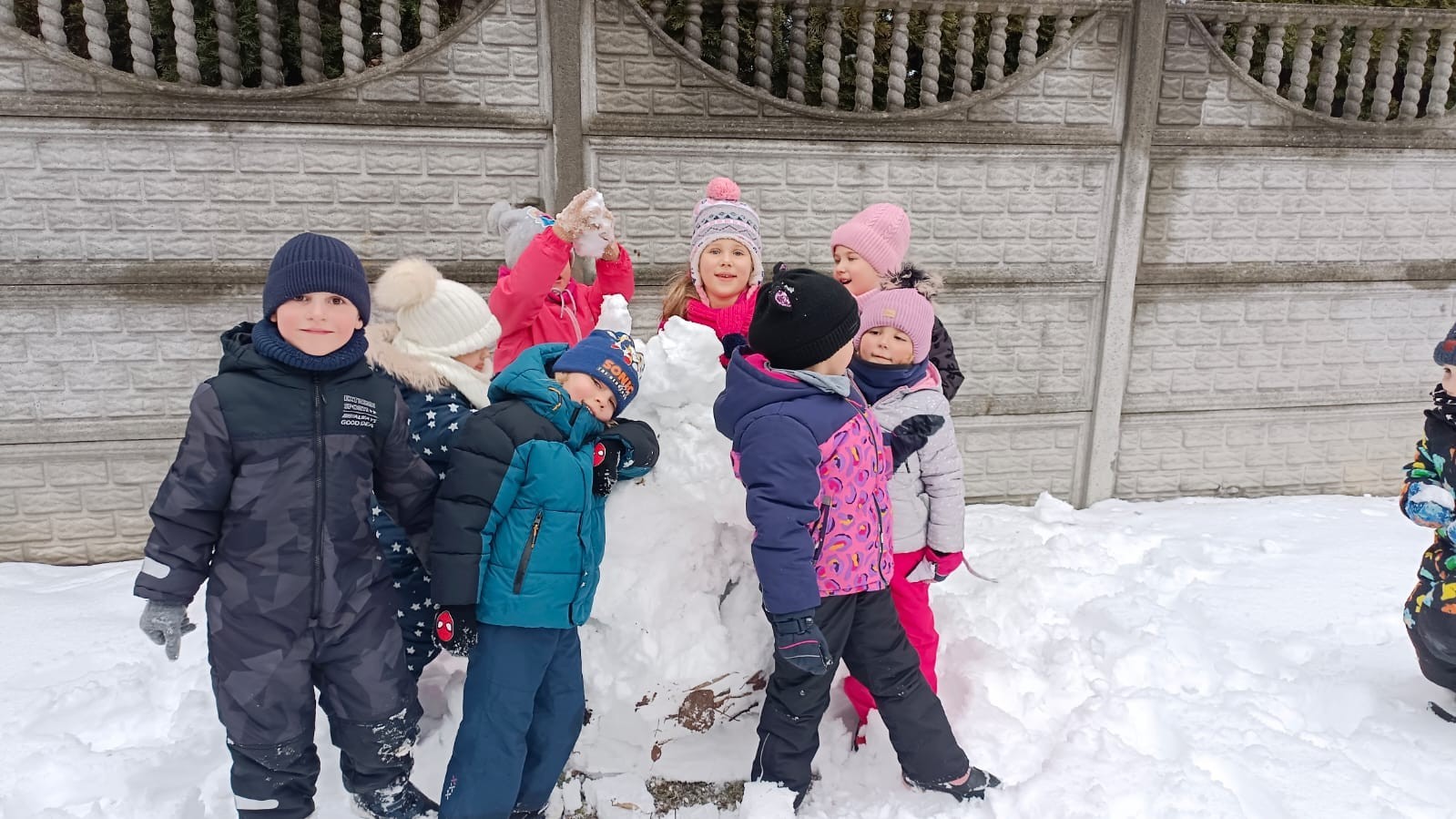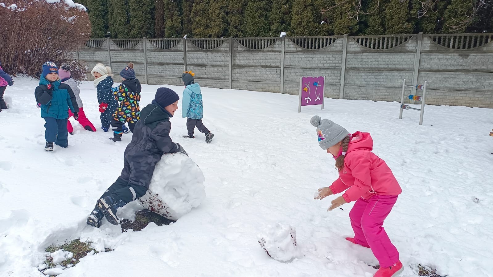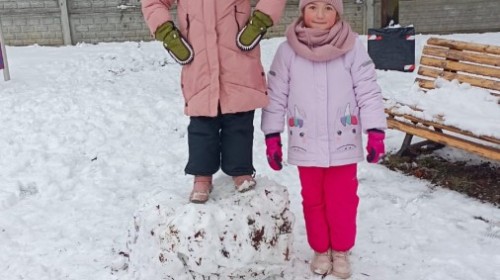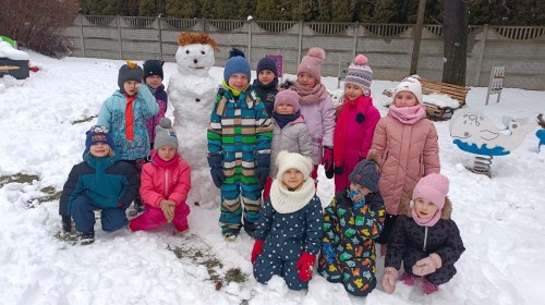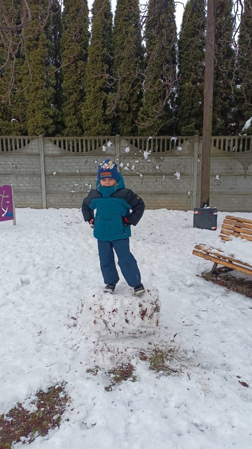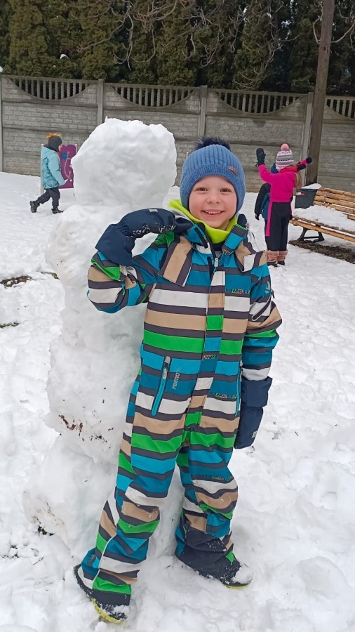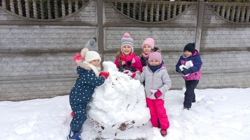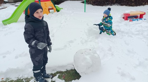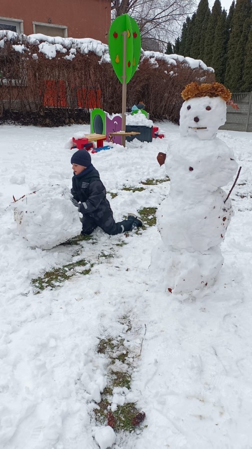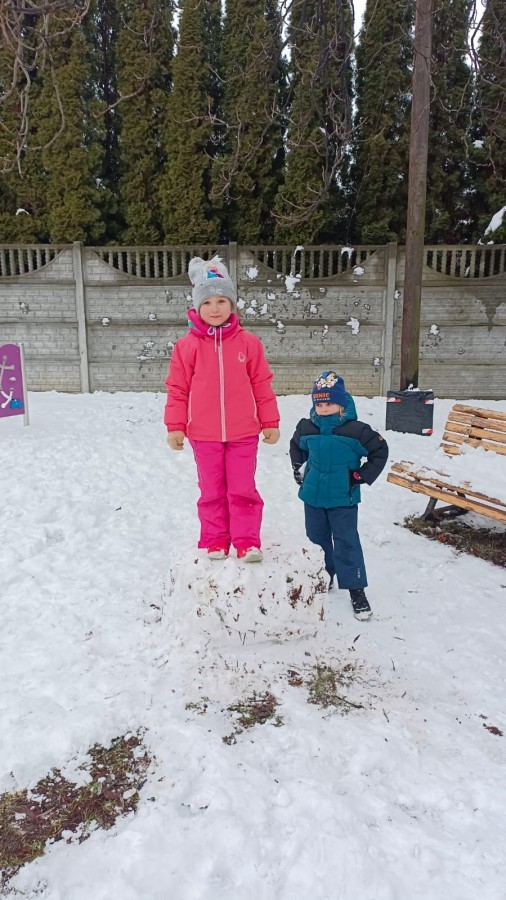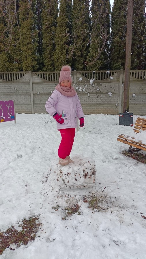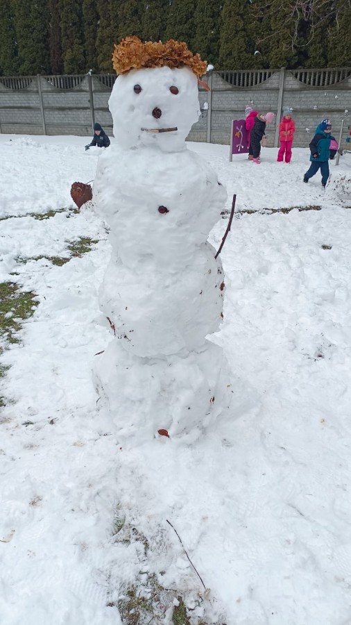 Korzystając z zimowej aury wyszliśmy do ogrodu. Śniegu było tak dużo, że każdy przedszkolak ulepił swoją kulę śniegową. Dzieci zrobiły wielką górę ze śniegu, którą nazwały "górą lodową", ulepiły bałwana, który miał nos i oczy że znalezionych pod śniegiem szyszek i kasztanów. To było prawdziwe zimowe szaleństwo ❄☃️