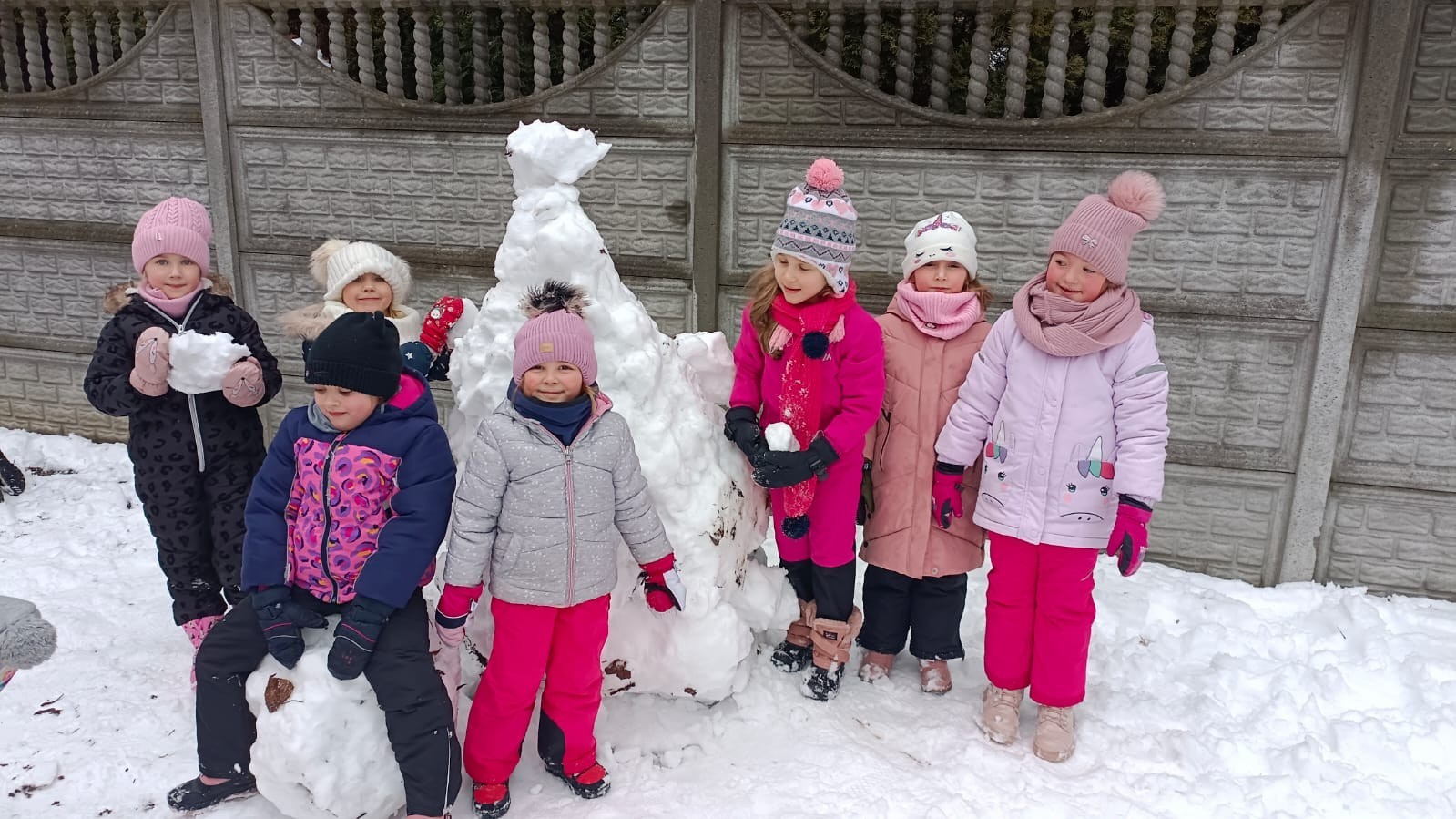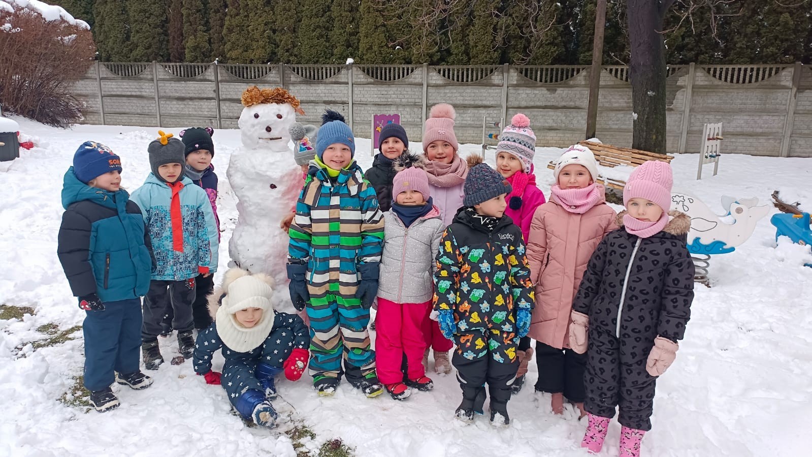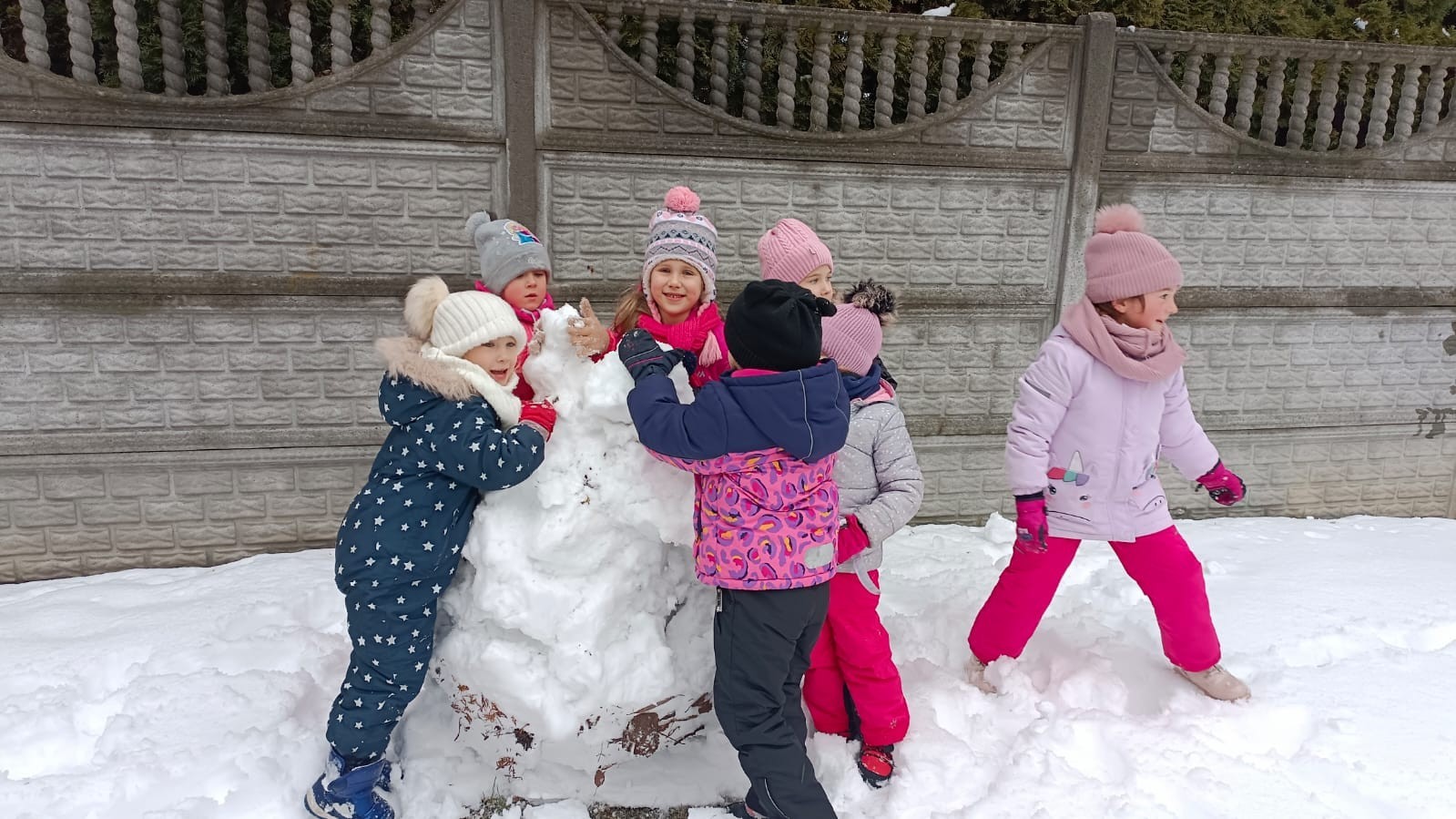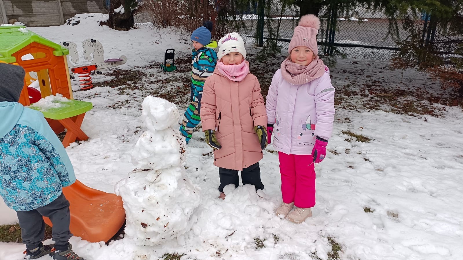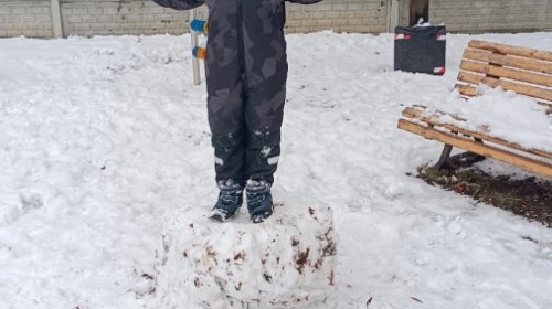 Korzystając z zimowej aury wyszliśmy do ogrodu. Śniegu było tak dużo, że każdy przedszkolak ulepił swoją kulę śniegową. Dzieci zrobiły wielką górę ze śniegu, którą nazwały "górą lodową", ulepiły bałwana, który miał nos i oczy że znalezionych pod śniegiem szyszek i kasztanów. To było prawdziwe zimowe szaleństwo ❄☃️
