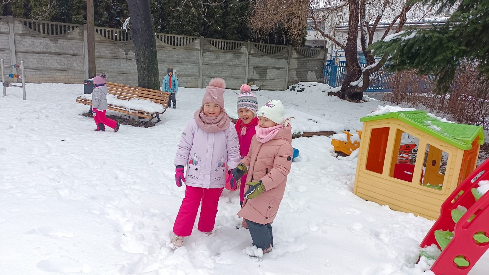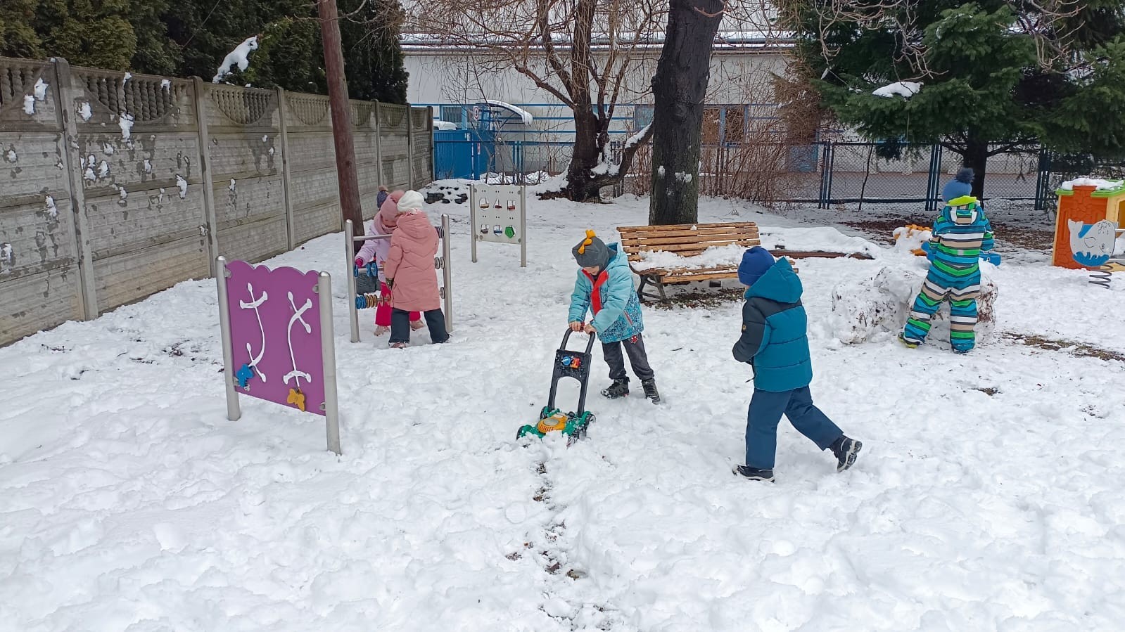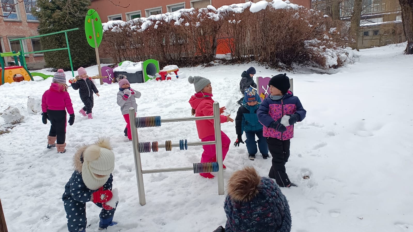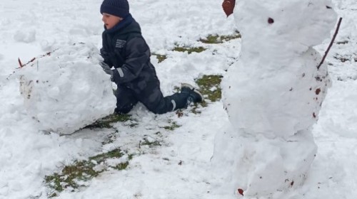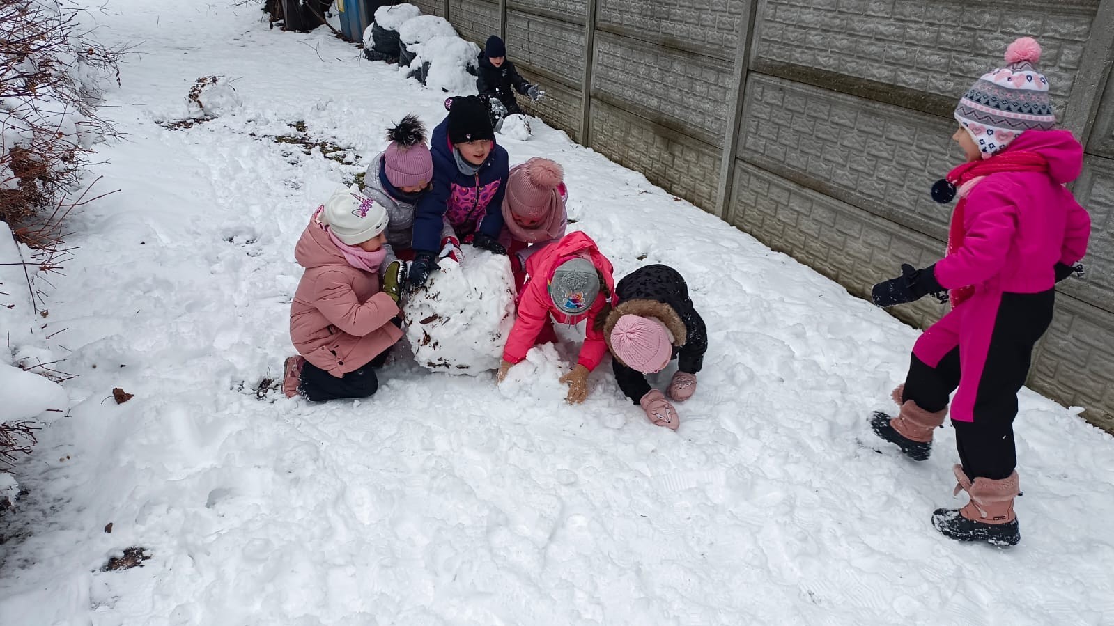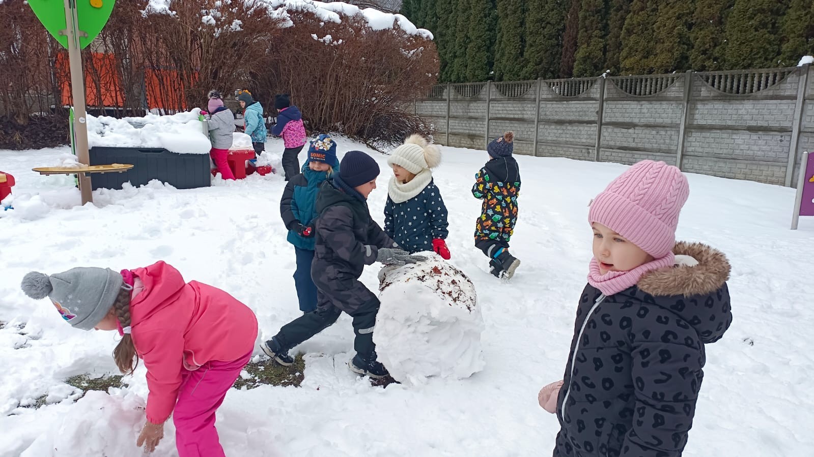 Korzystając z zimowej aury wyszliśmy do ogrodu. Śniegu było tak dużo, że każdy przedszkolak ulepił swoją kulę śniegową. Dzieci zrobiły wielką górę ze śniegu, którą nazwały "górą lodową", ulepiły bałwana, który miał nos i oczy że znalezionych pod śniegiem szyszek i kasztanów. To było prawdziwe zimowe szaleństwo ❄☃️