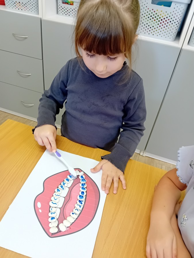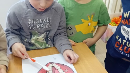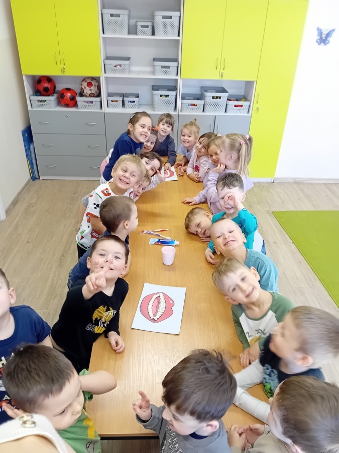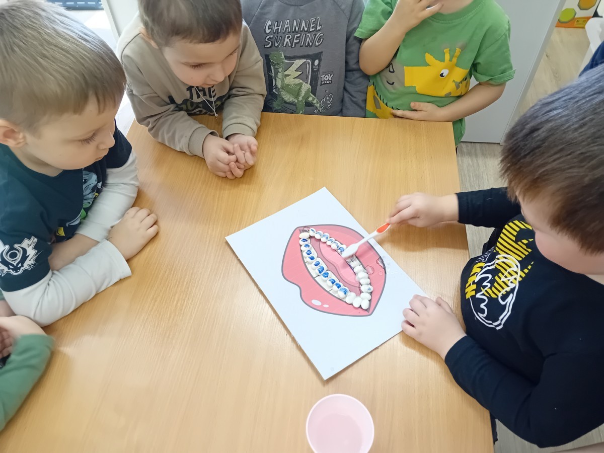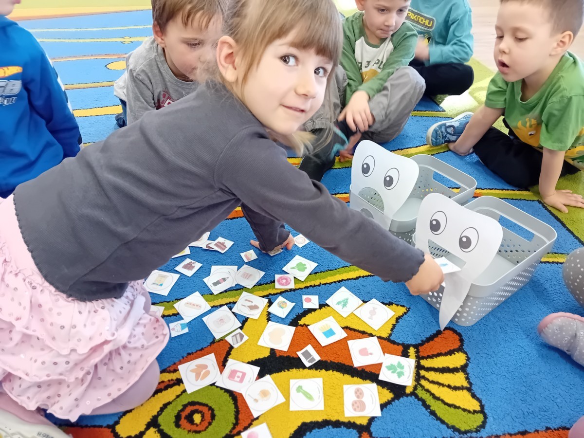 treningu mistrzowskiego szczotkowania – teraz każdy z nas wie, jak dotrzeć do każdego zakamarka. Była też matematyka na talerzu – liczyliśmy witaminowe porcje, segregowaliśmy zdrowe produkty i tworzyliśmy owocowe zbiory, łącząc naukę cyferek ze zdrowym jadłospisem!