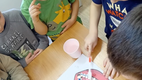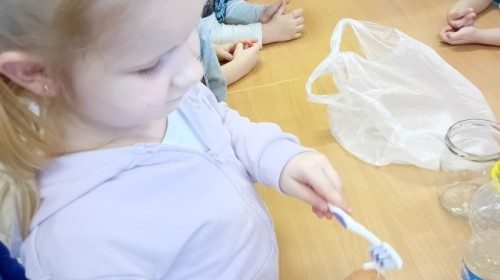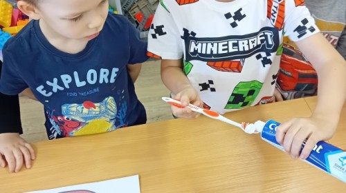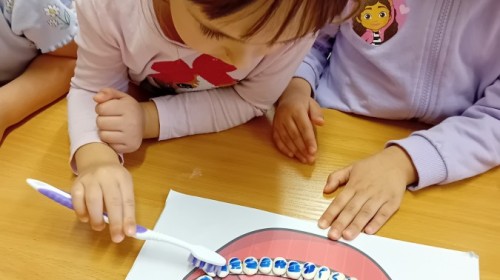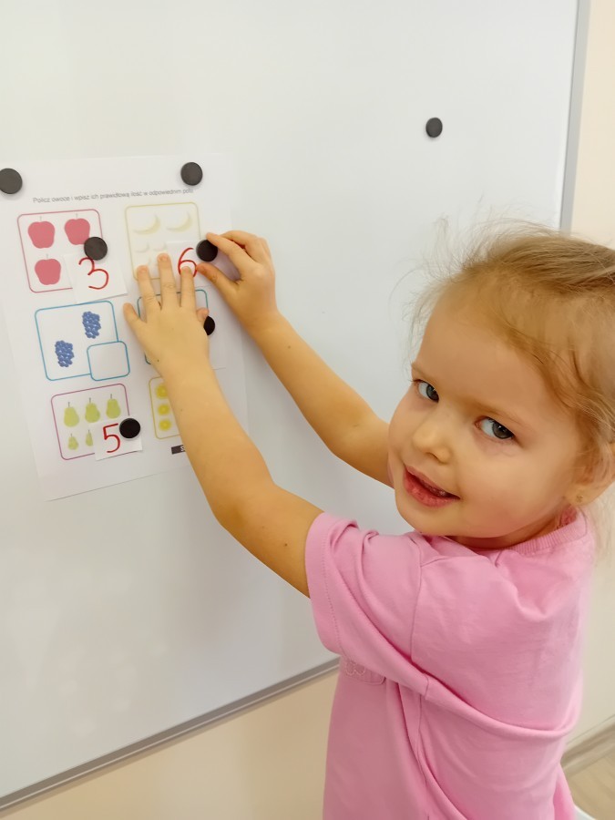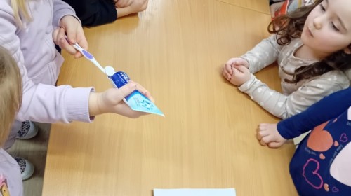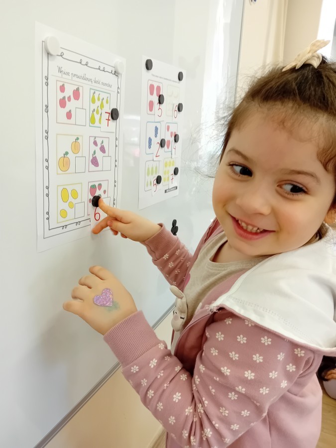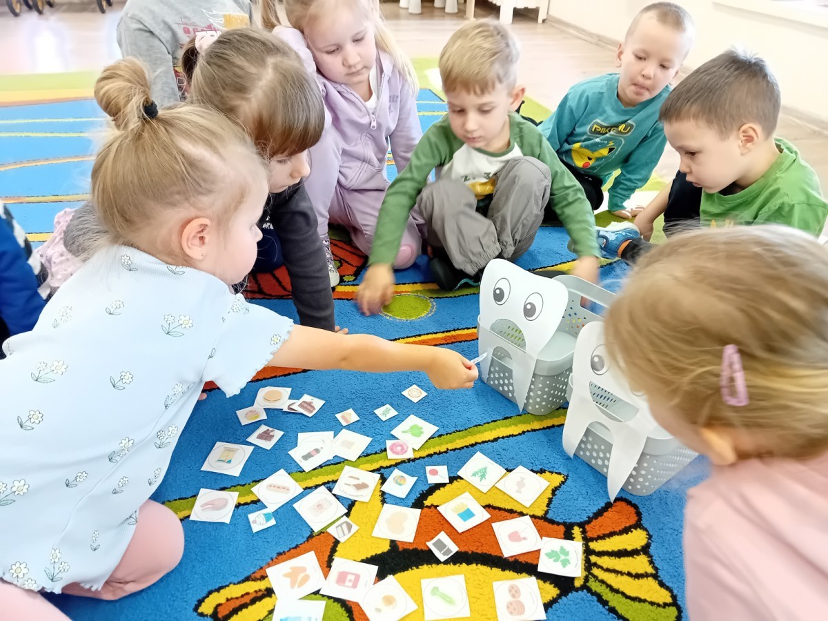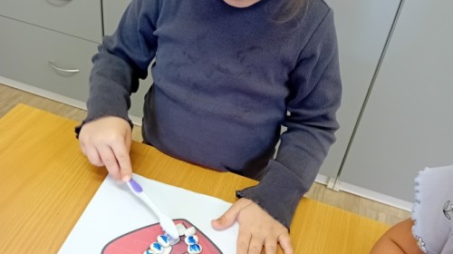 treningu mistrzowskiego szczotkowania – teraz każdy z nas wie, jak dotrzeć do każdego zakamarka. Była też matematyka na talerzu – liczyliśmy witaminowe porcje, segregowaliśmy zdrowe produkty i tworzyliśmy owocowe zbiory, łącząc naukę cyferek ze zdrowym jadłospisem!