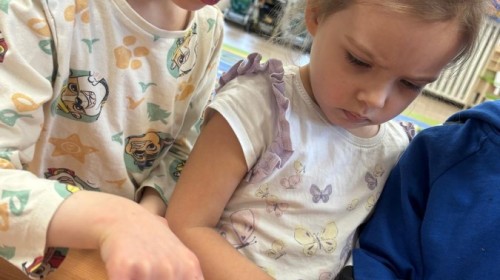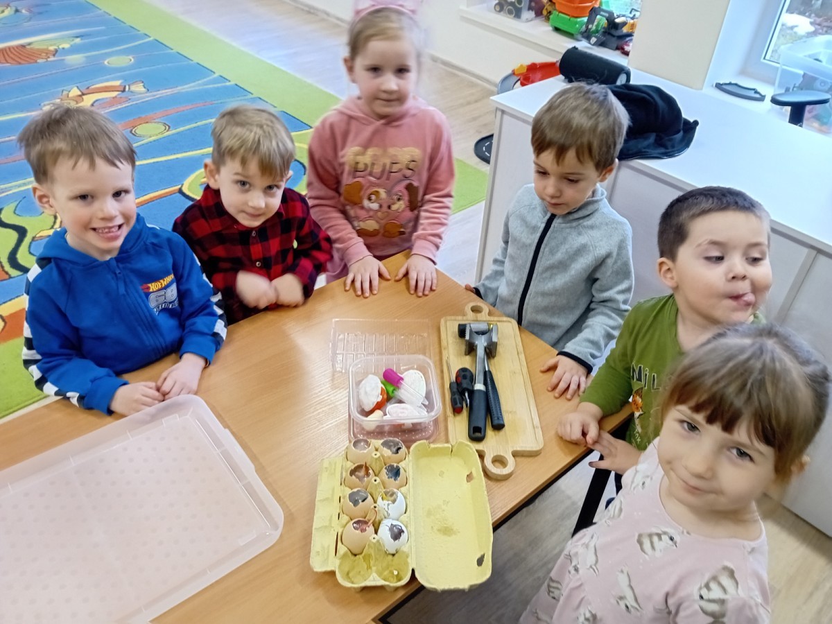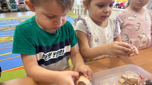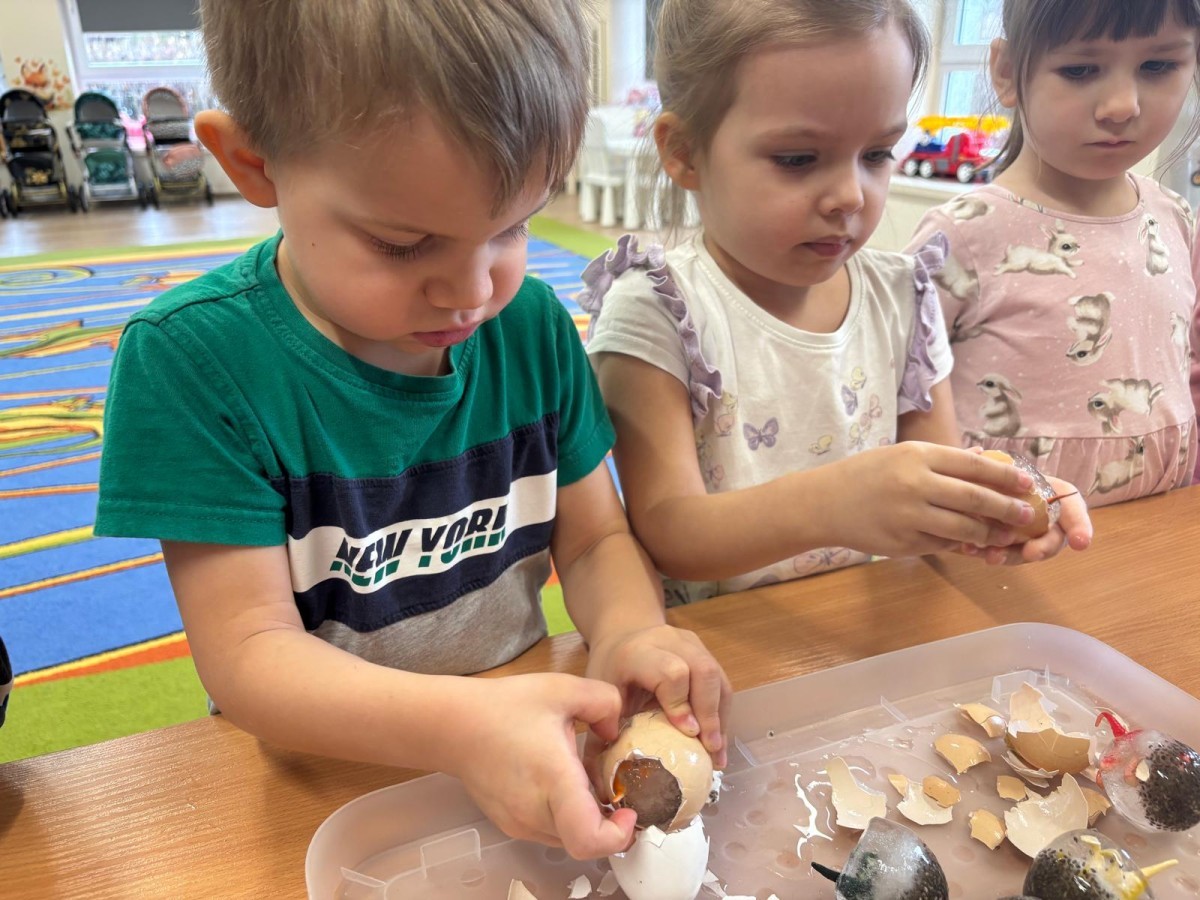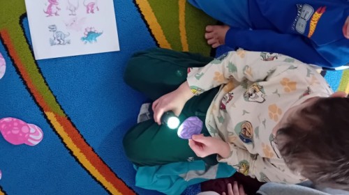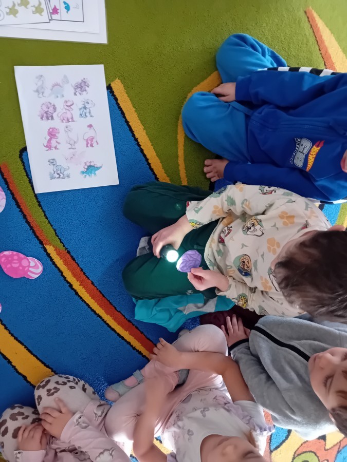 Naszą przygodę zaczęliśmy od poszukiwania odpowiedzi na pytanie: „Skąd się wzięły dinozaury?”. Wspólnie przenieśliśmy się w czasie o miliony lat, by podejrzeć, jak wyglądał świat zdominowany przez wielkie gady. Dzieci z zaciekawieniem odkrywały tajemnicę narodzin dinozaurów, śledząc ich drogę od skorupki jajka aż po jurajskie puszcze