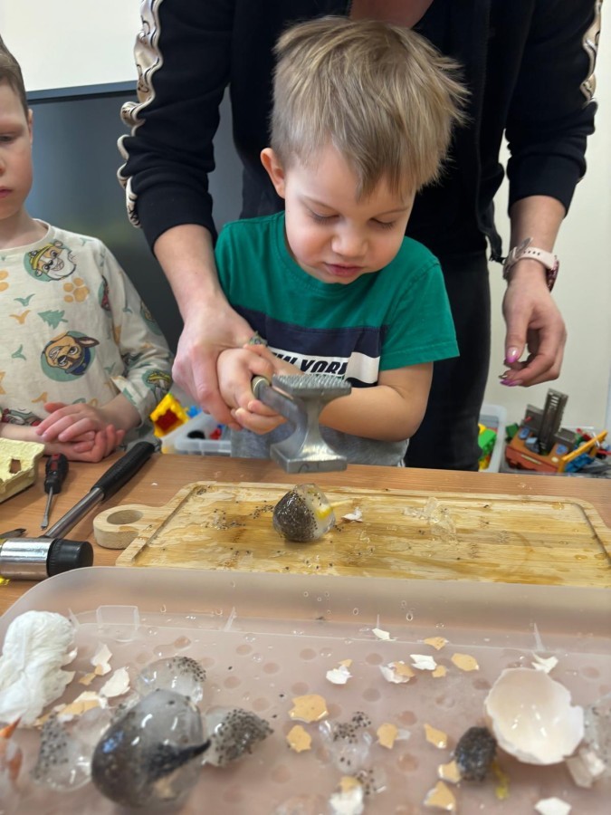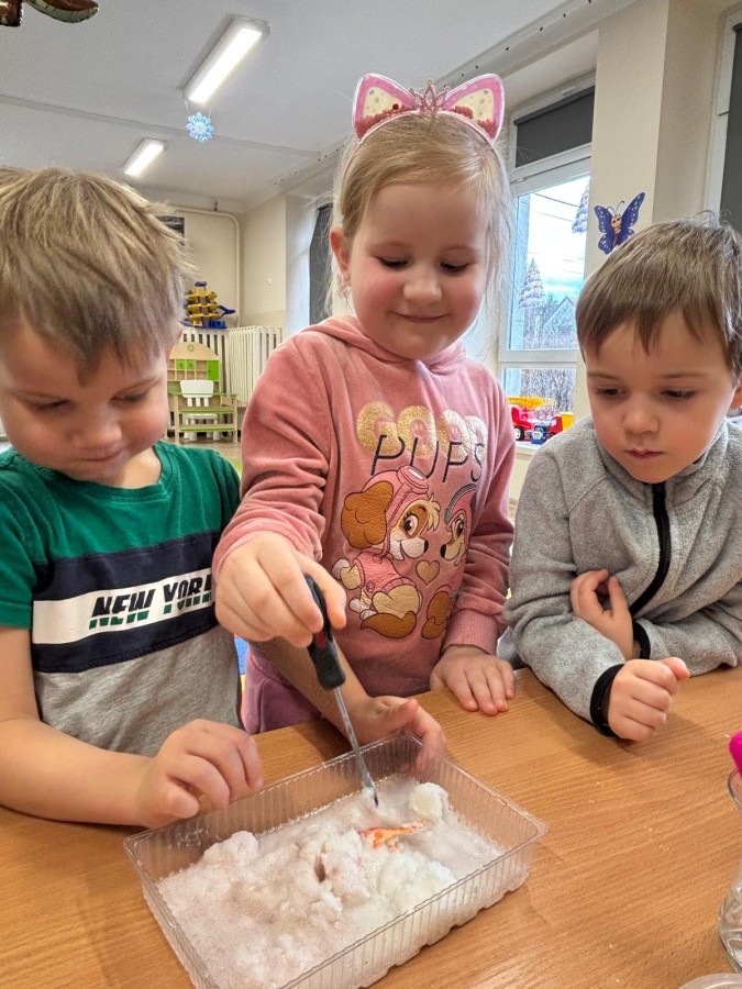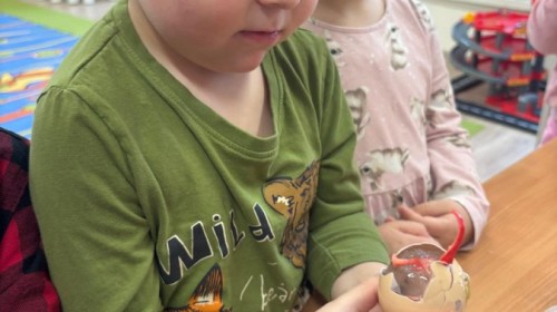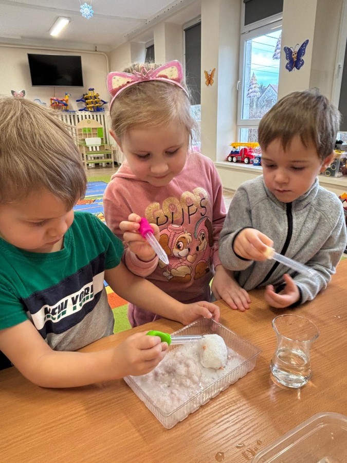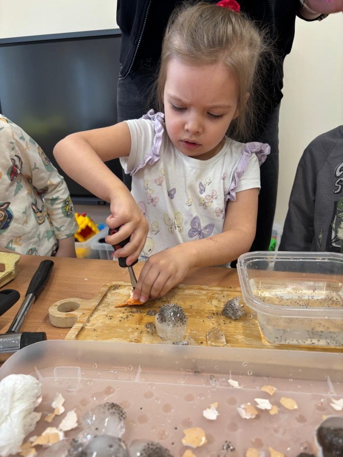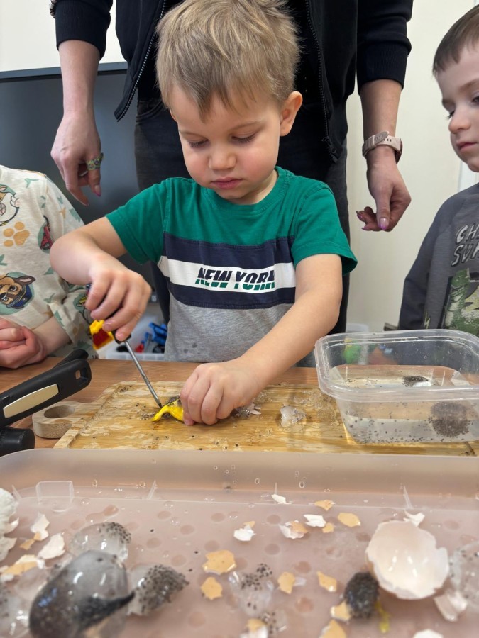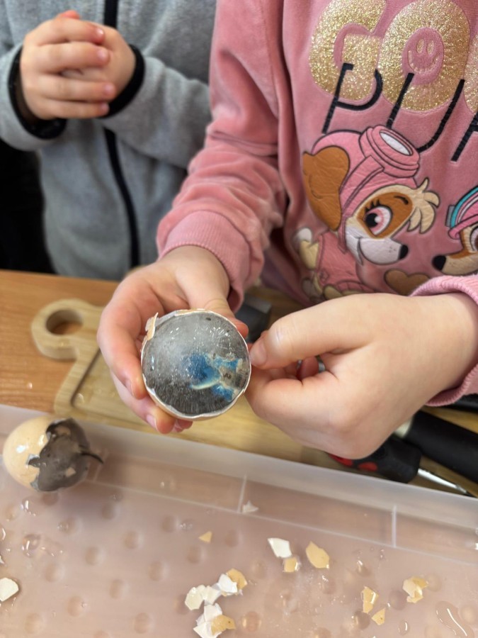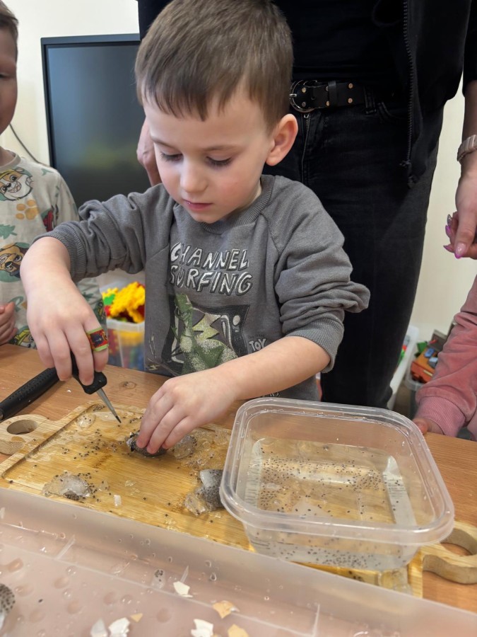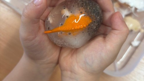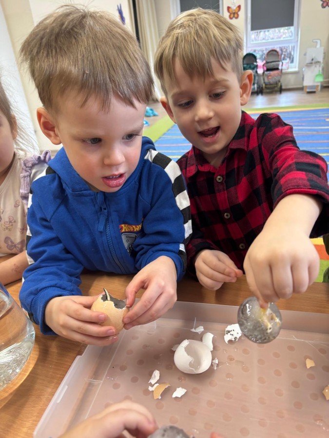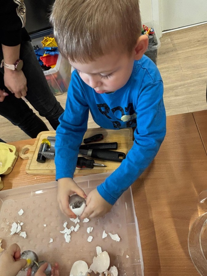 - ❄️ Lodowe jaja – cierpliwie uwalnialiśmy figurki dinozaurów zamknięte w lodzie.