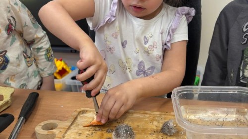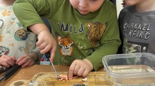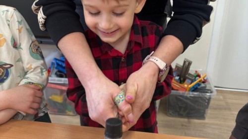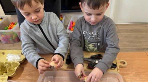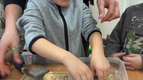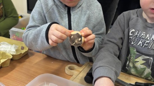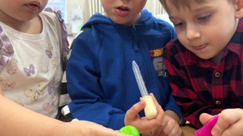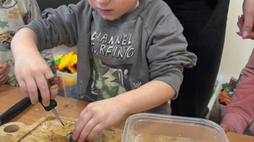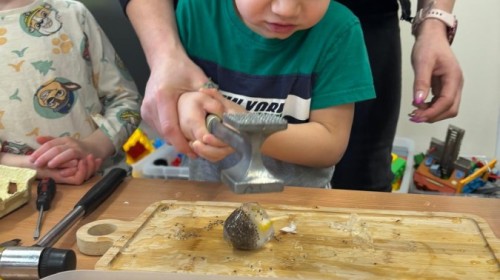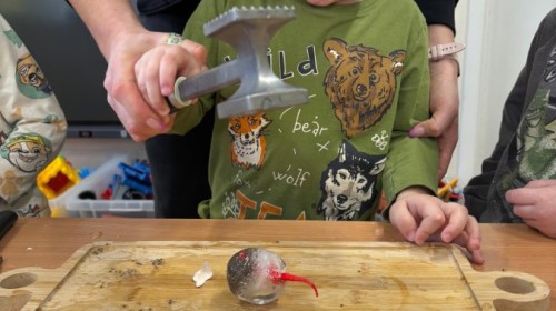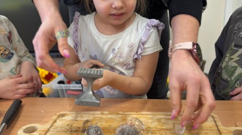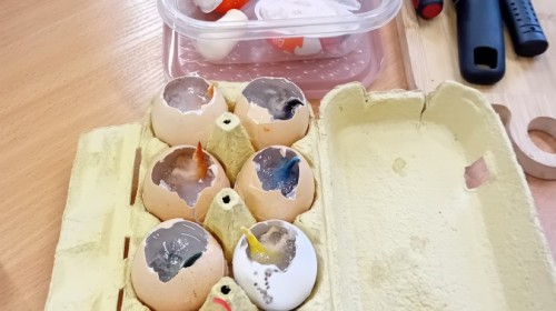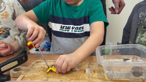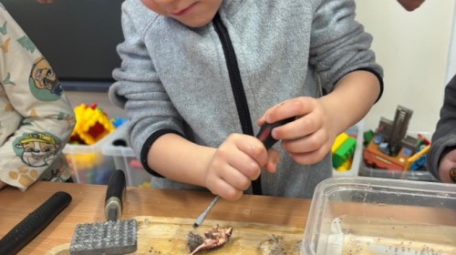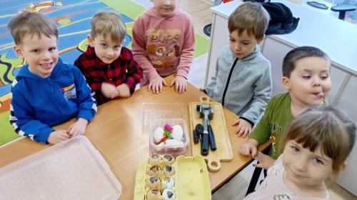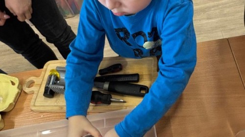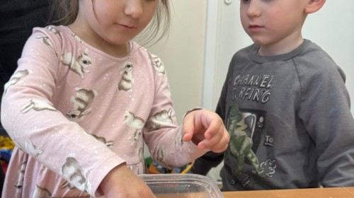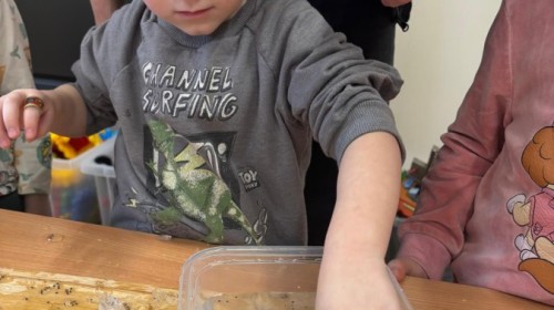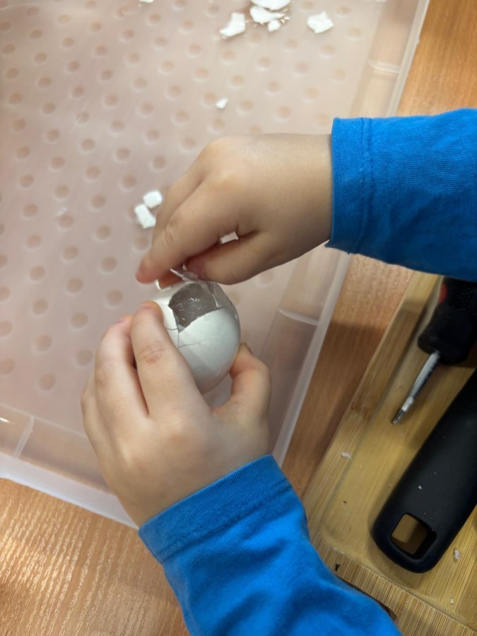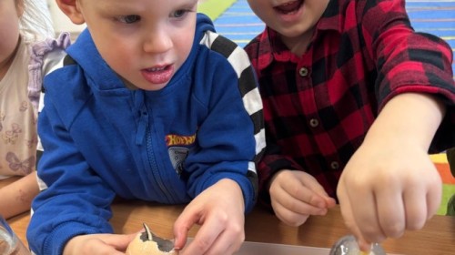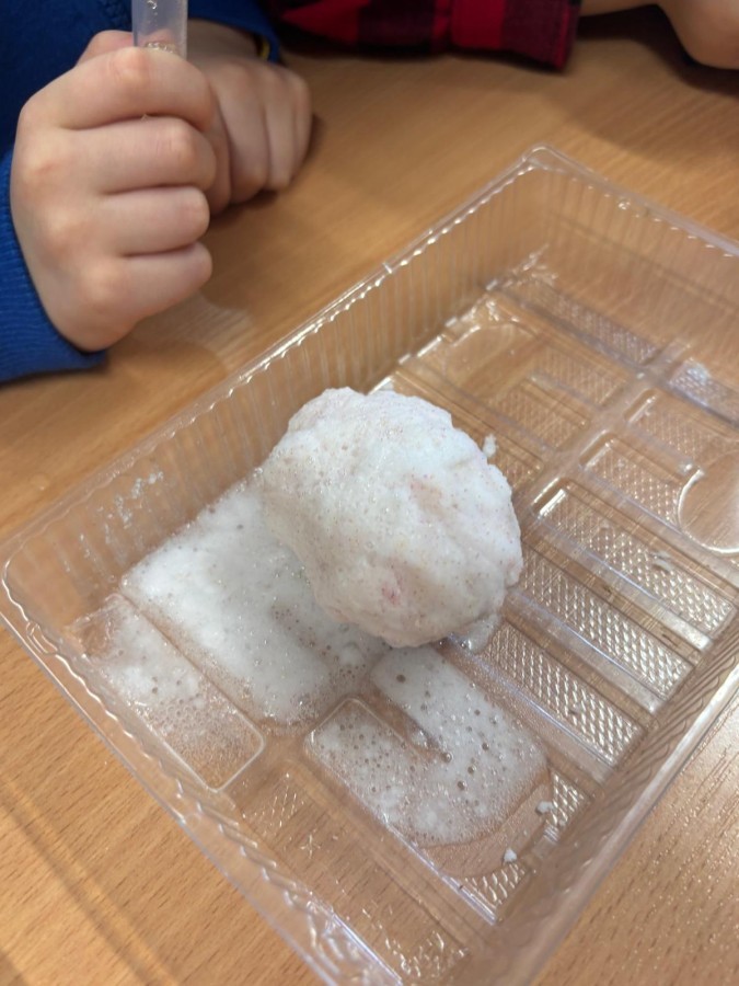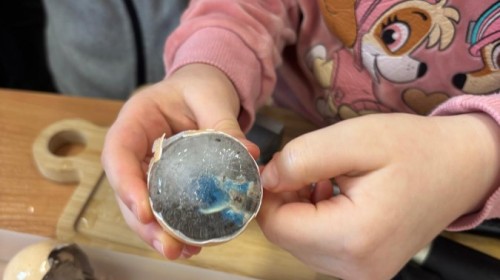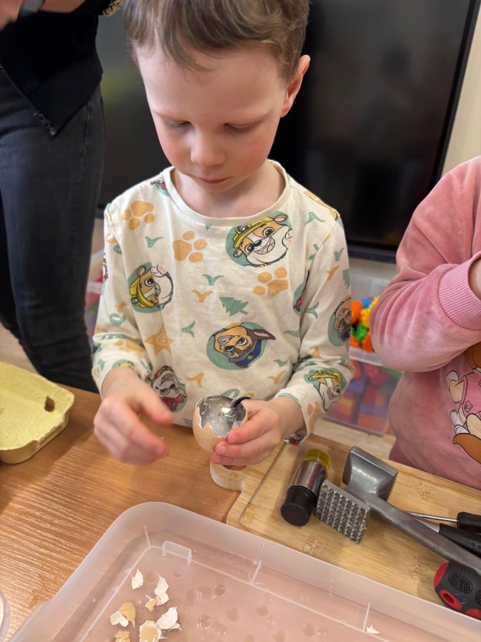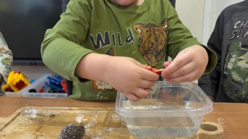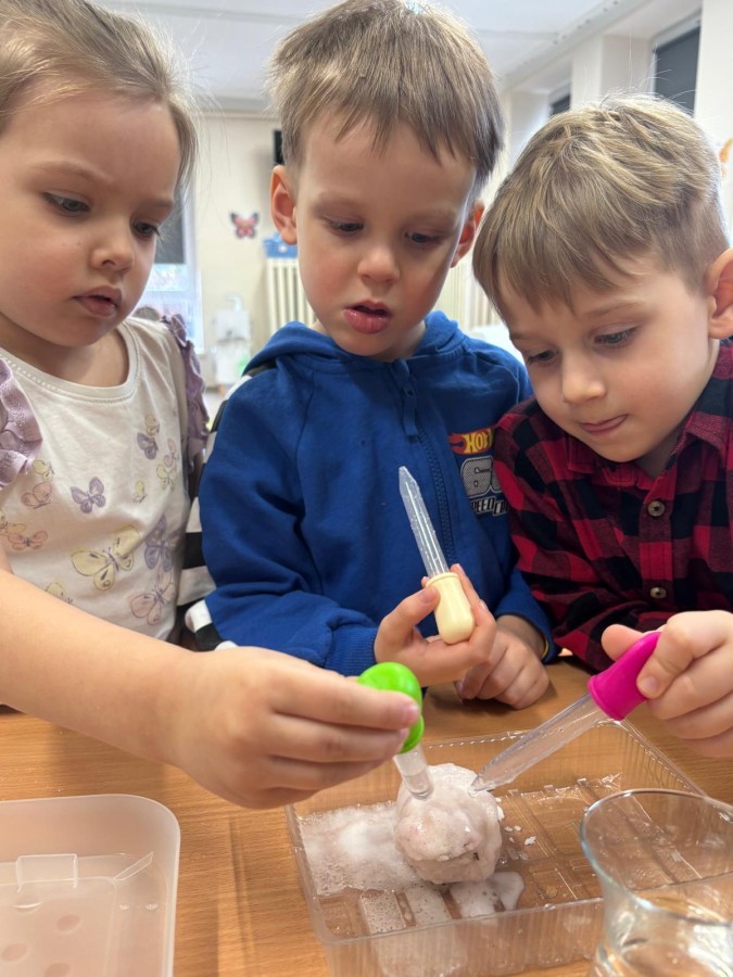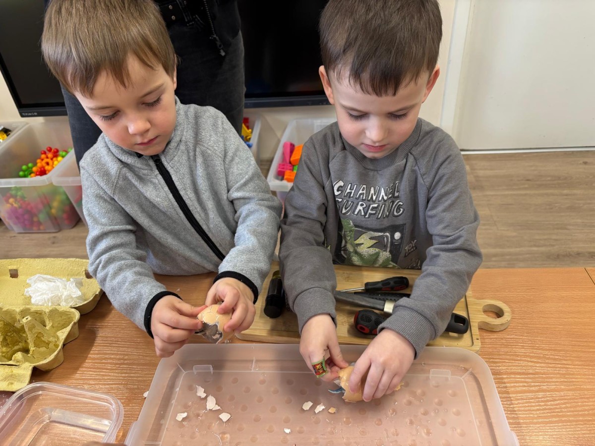 - ❄️ Lodowe jaja – cierpliwie uwalnialiśmy figurki dinozaurów zamknięte w lodzie.