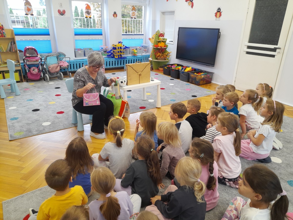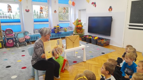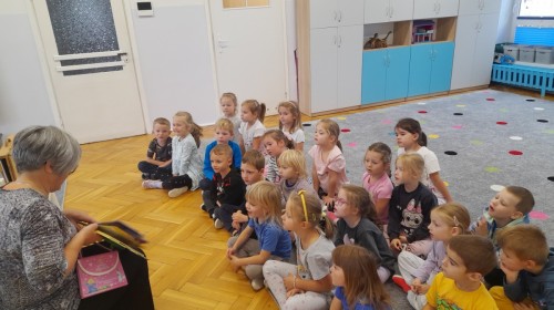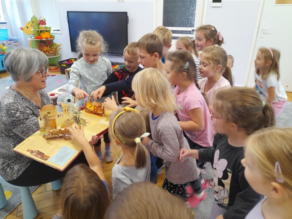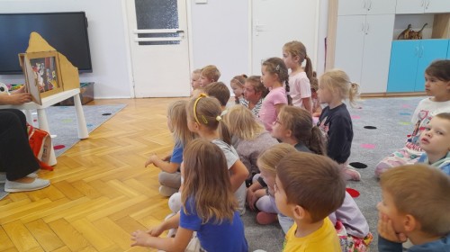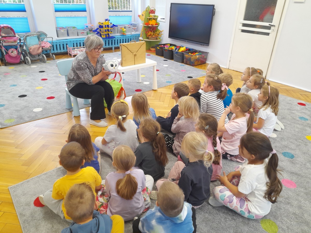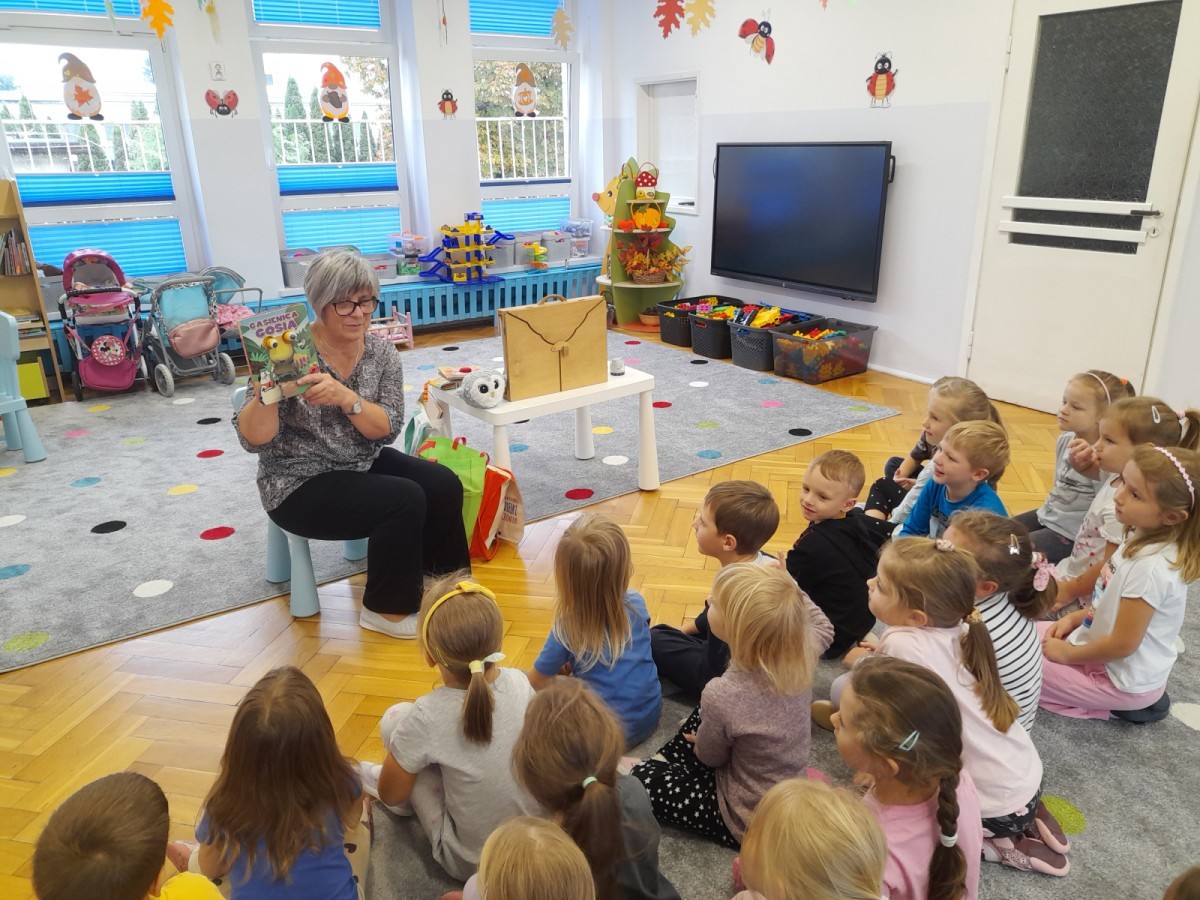 Dziś odbyły się pierwsze zajęcia biblioteczne w tym roku szkolnym. Pani Maria pokazała dzieciom różne rodzaje książek dla dzieci i opowiedziała o konieczności ich poszanowania. Następnie teatrzyk kamishibai otworzył się za sprawą zaklęcia "Hokus-pokus, czary-mary teatrzyku otwórz się" i dzieci były zachwycone królewskim klimatem prezentacji. Wysłuchaliśmy ciekawej bajki "Noc w bibliotece" i aktywnie poznawaliśmy bohaterów różnych bajek.