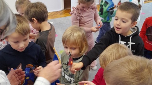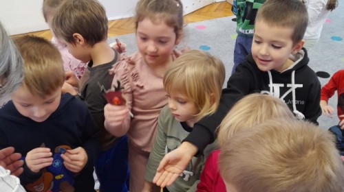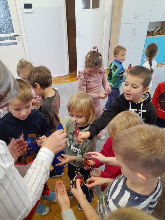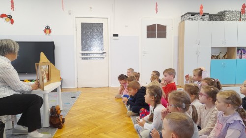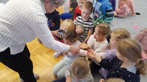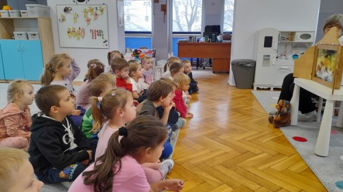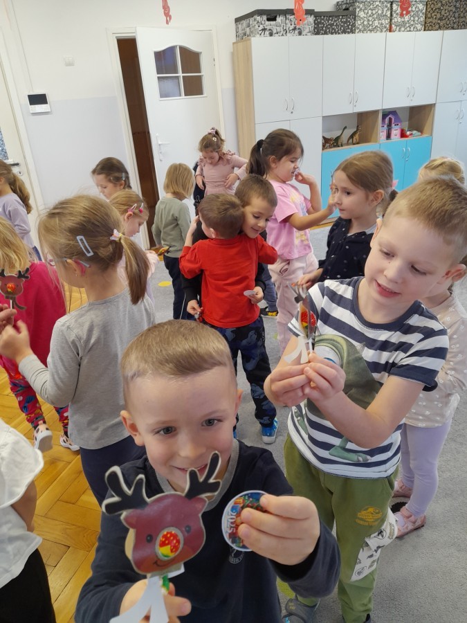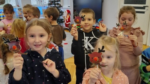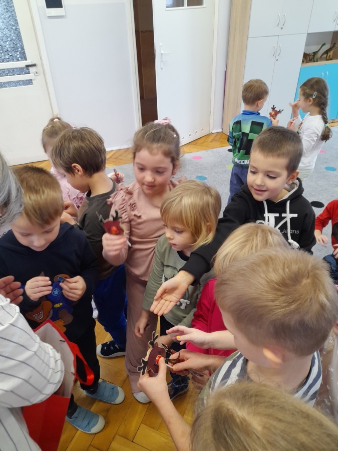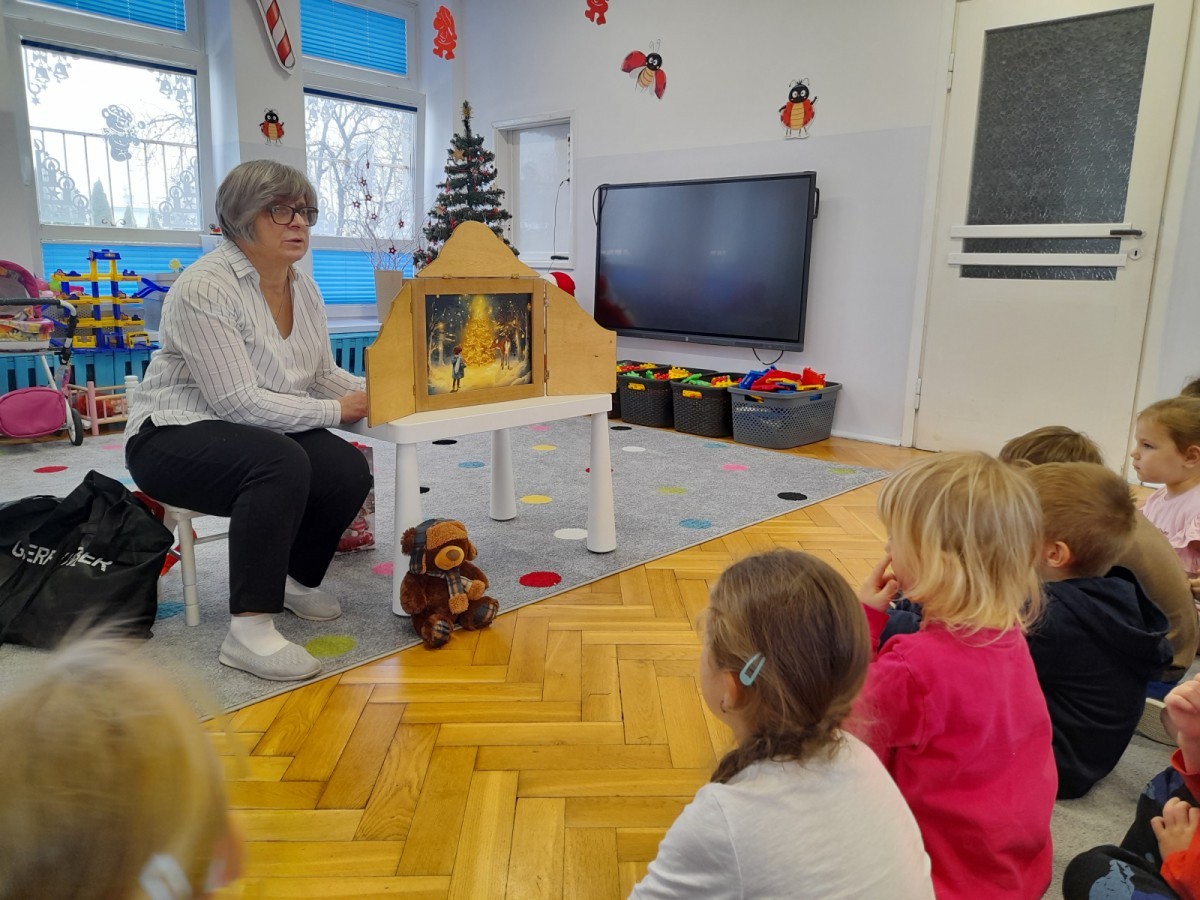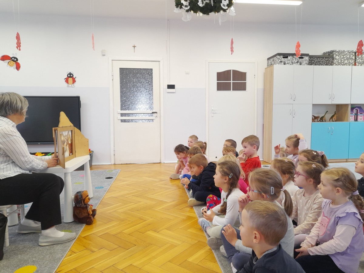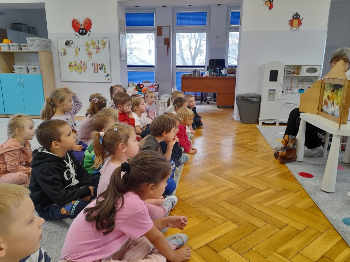 Dzisiaj odwiedziła nas Pani Maria – bibliotekarka. Biedronki miały okazję wysłuchać uroczej, świątecznej bajki pt. "Jelonek Lucek i sanie Świętego Mikołaja". Dzieci z zainteresowaniem śledziły przygody Lucka, a magiczna atmosfera opowieści sprawiła, że jeszcze bardziej nie mogą się doczekać wizyty Świętego Mikołaja. Pani Maria miała przygotowaną jeszcze jedną piękną historię świąteczną pełną ciepła, dobroci i zimowych przygód Misia i jego przyjaciół. Zajęcia zostały zakończone słodką niespodzianką.