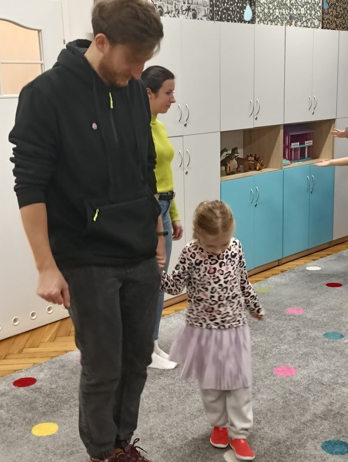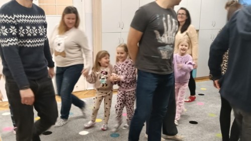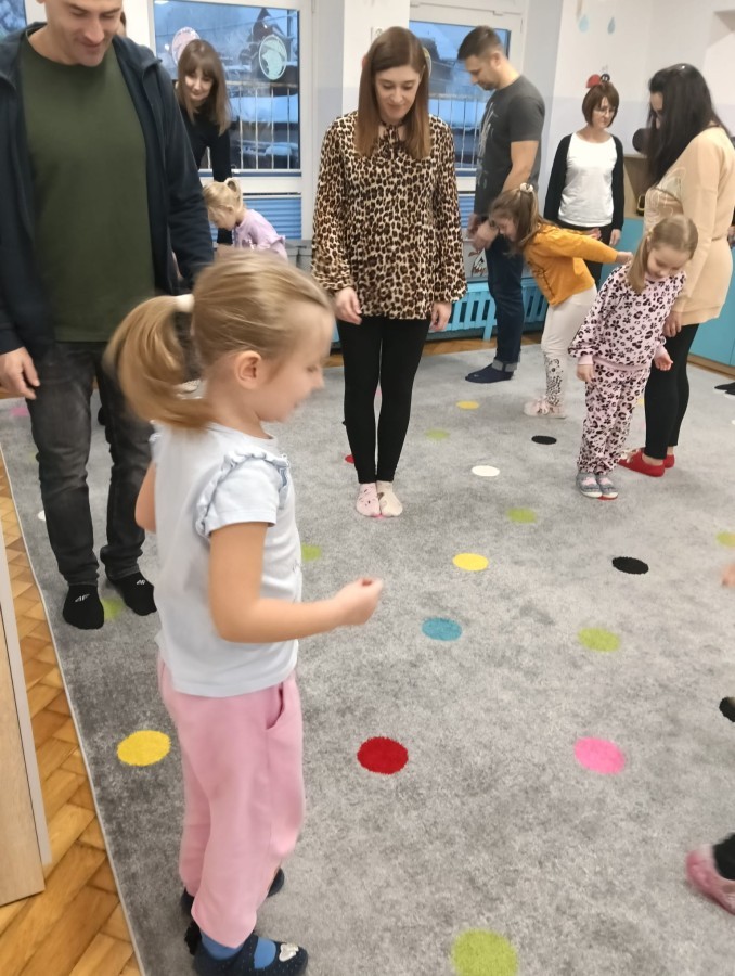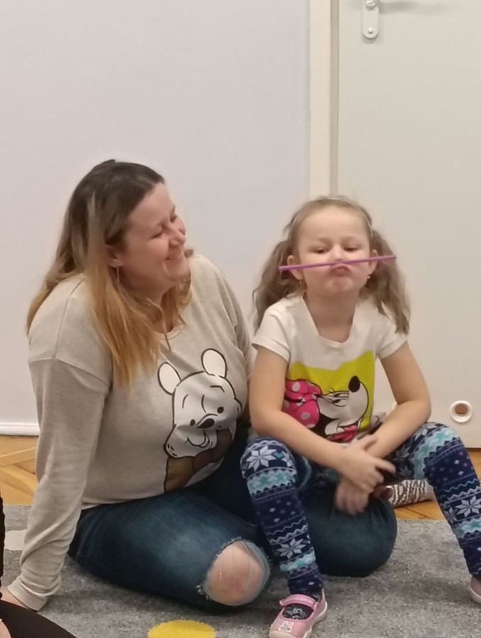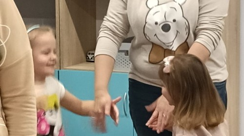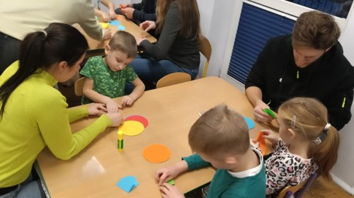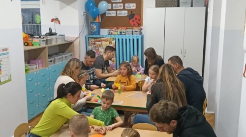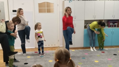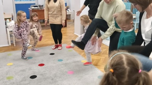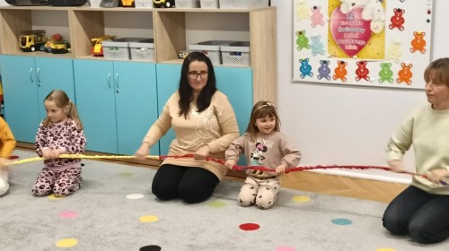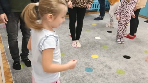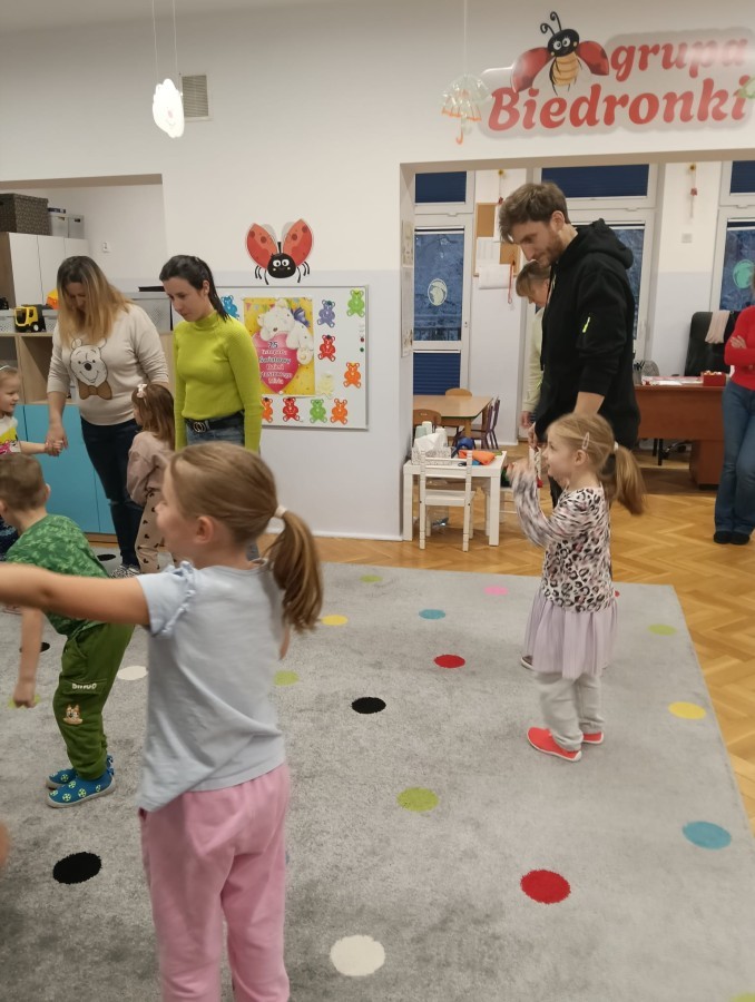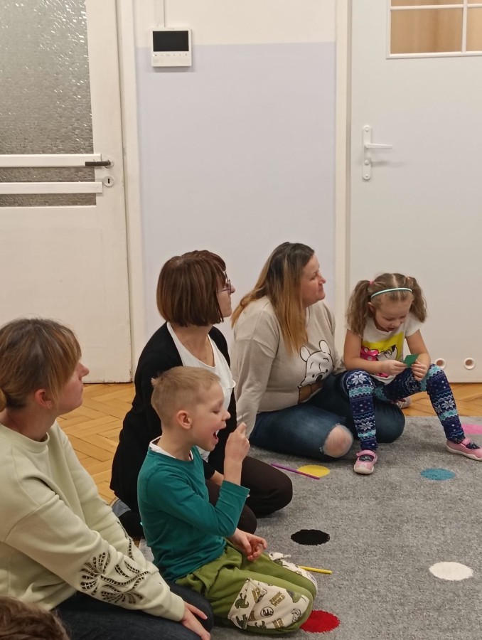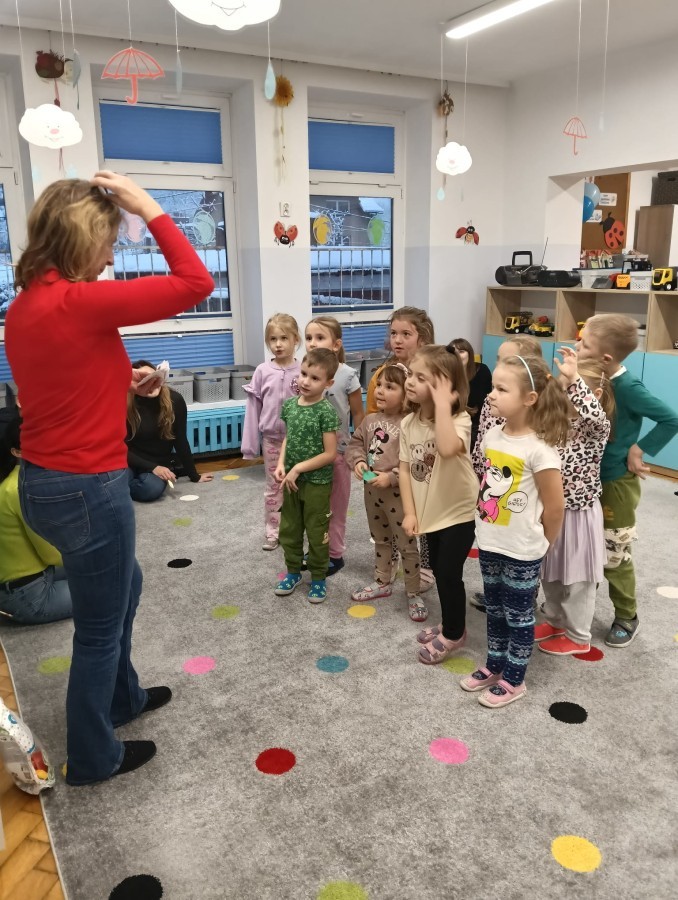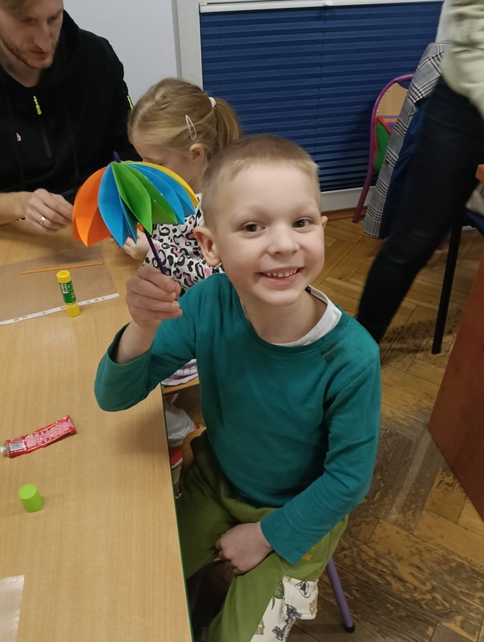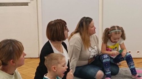 Zaprosiliśmy rodziców na zajęcie otwarte w naszym przedszkolu, podczas którego mieli okazję zobaczyć jak uczymy się i bawimy. Pani Ula - logopedka, zaprezentowała ćwiczenia do wykonywania w domu wspomagający rozwój aparatu mowy. Doskonaliliśmy również koordynację wzrokowo-ruchową, aktywnie słuchaliśmy muzyki, a na koniec wspólnie z Rodzicami stworzyliśmy kolorowe jesienne parasole.