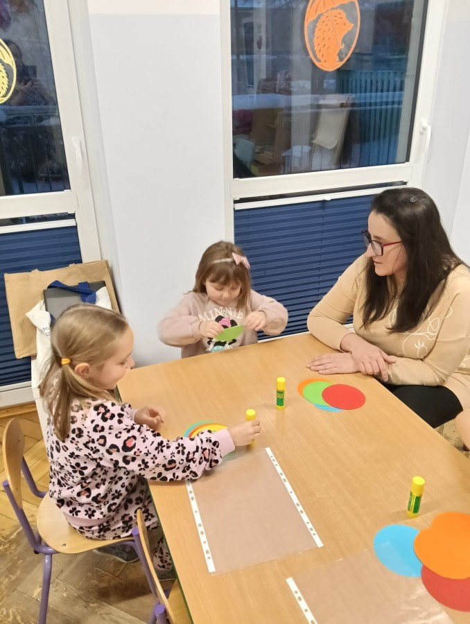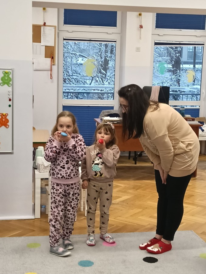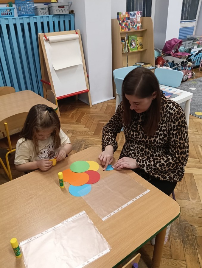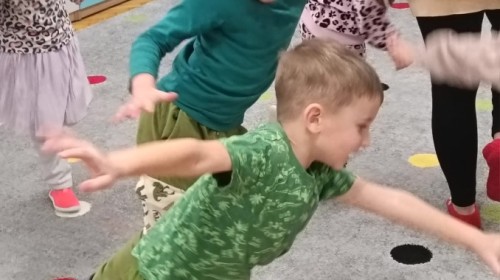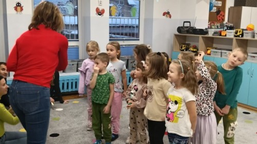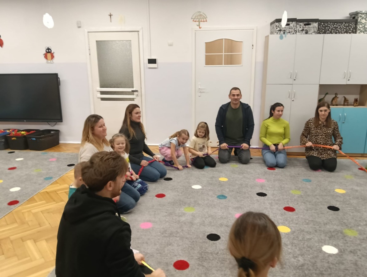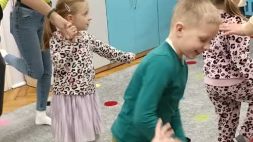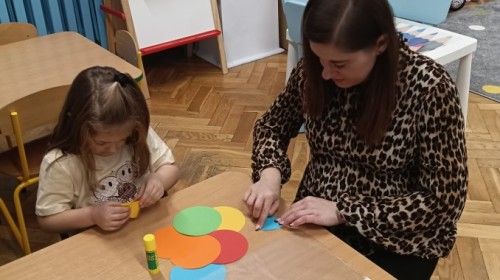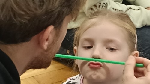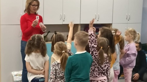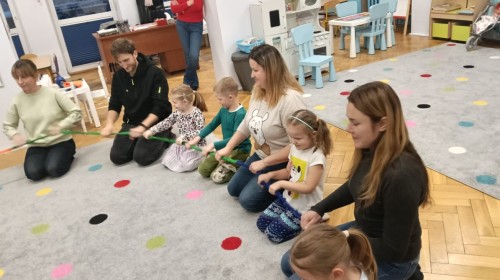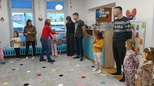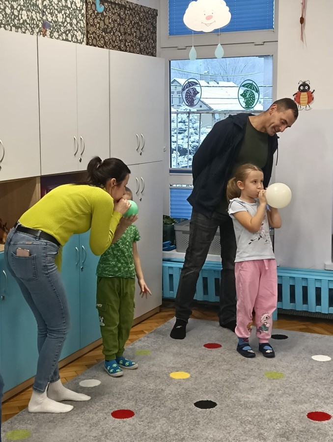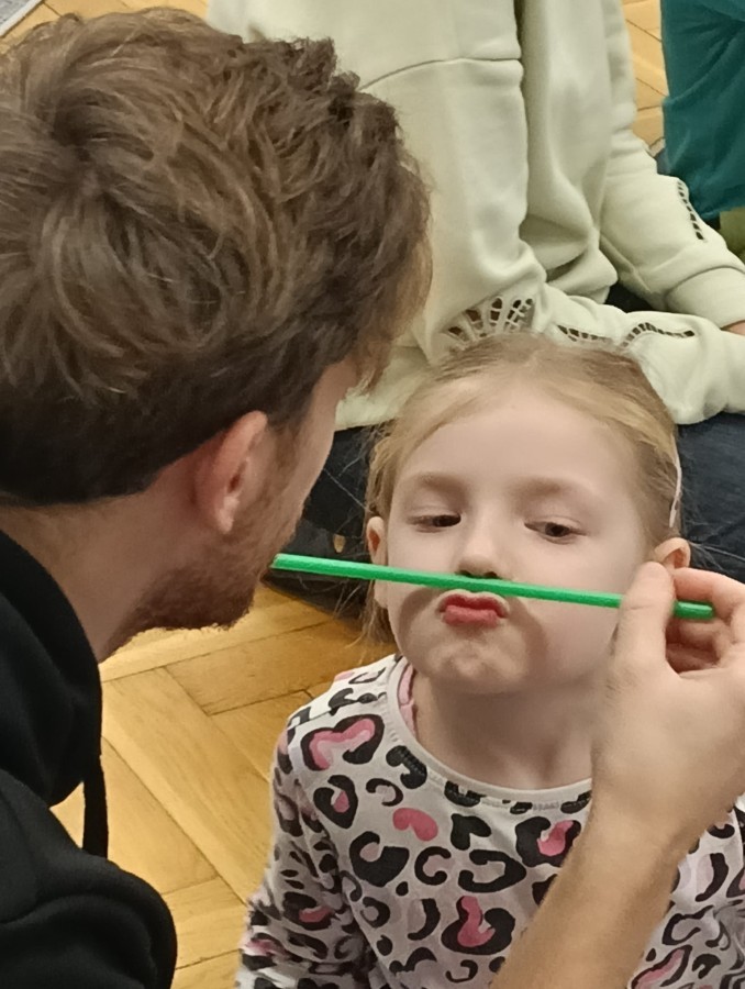Zaprosiliśmy rodziców na zajęcie otwarte w naszym przedszkolu, podczas którego mieli okazję zobaczyć jak uczymy się i bawimy. Pani Ula - logopedka, zaprezentowała ćwiczenia do wykonywania w domu wspomagający rozwój aparatu mowy. Doskonaliliśmy również koordynację wzrokowo-ruchową, aktywnie słuchaliśmy muzyki, a na koniec wspólnie z Rodzicami stworzyliśmy kolorowe jesienne parasole.
