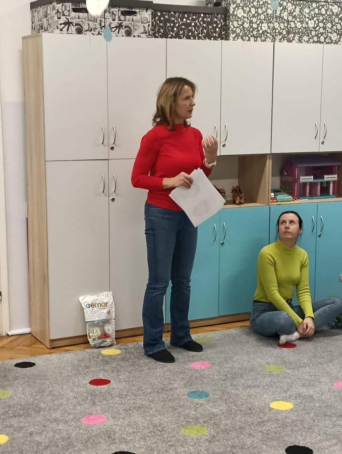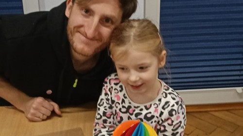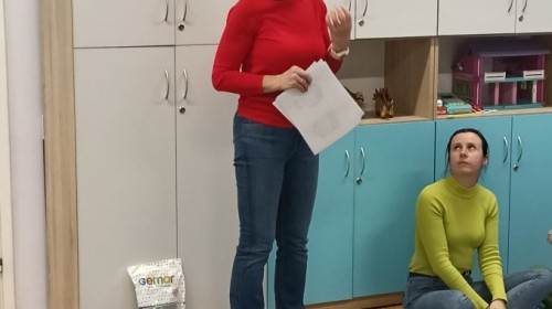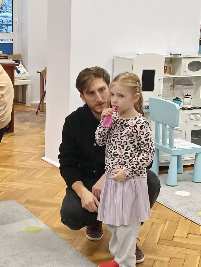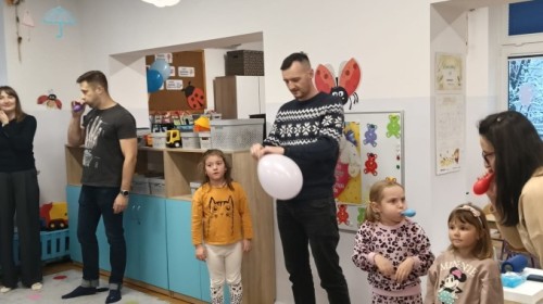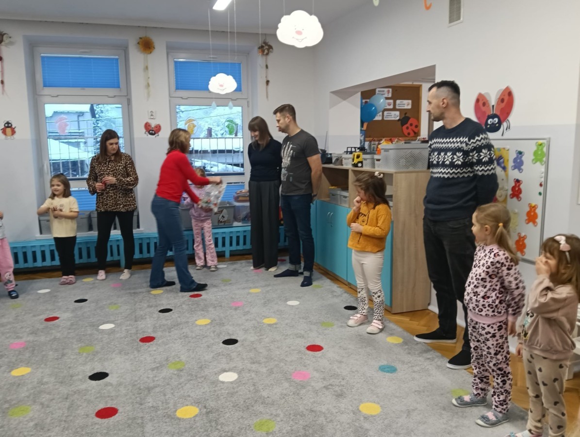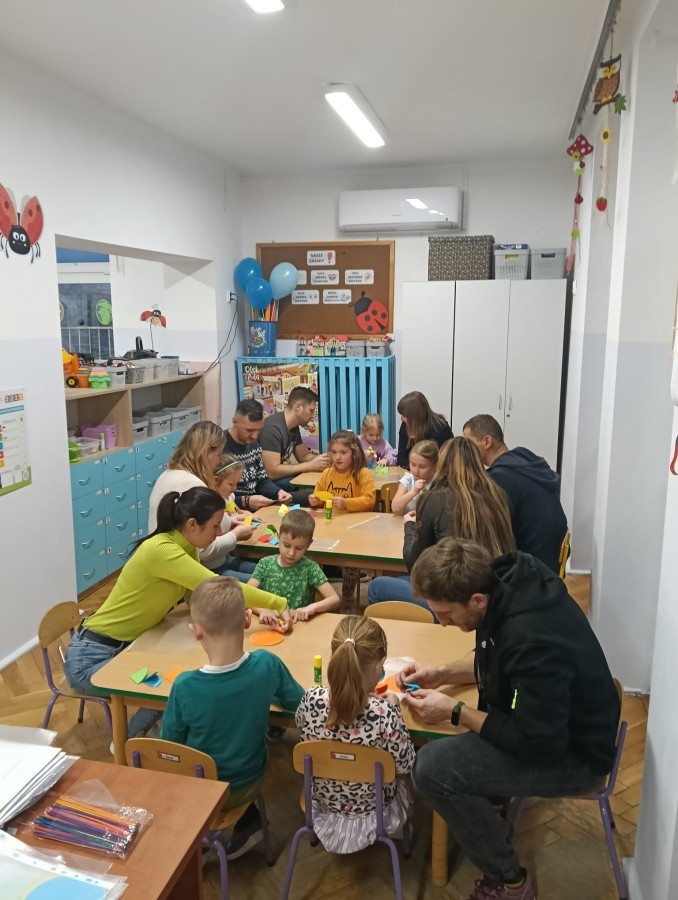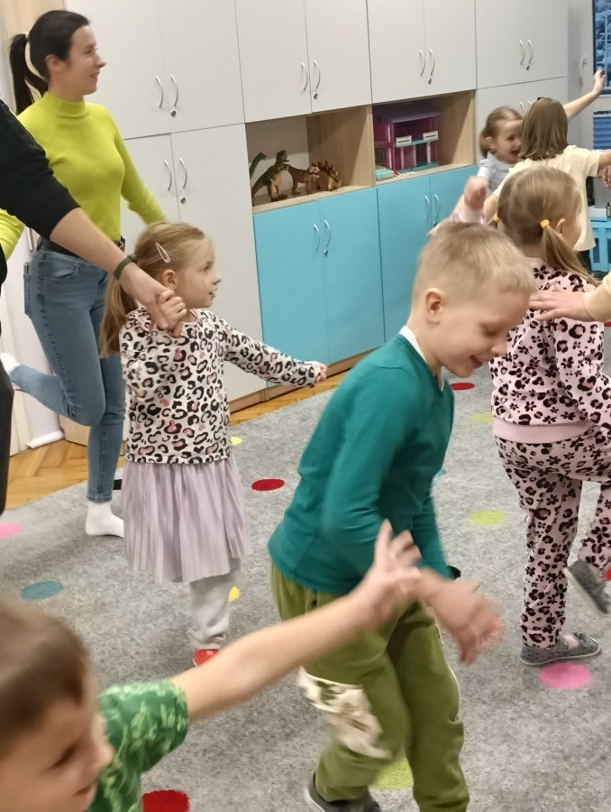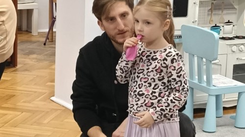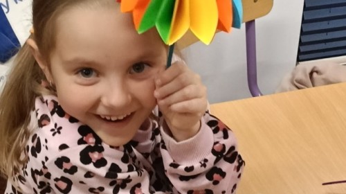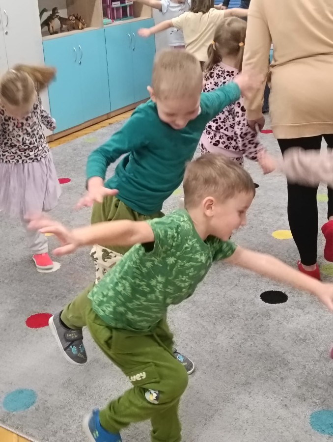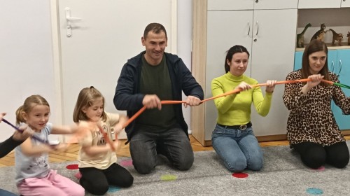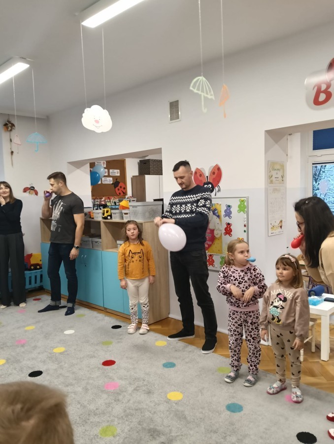 Zaprosiliśmy rodziców na zajęcie otwarte w naszym przedszkolu, podczas którego mieli okazję zobaczyć jak uczymy się i bawimy. Pani Ula - logopedka, zaprezentowała ćwiczenia do wykonywania w domu wspomagający rozwój aparatu mowy. Doskonaliliśmy również koordynację wzrokowo-ruchową, aktywnie słuchaliśmy muzyki, a na koniec wspólnie z Rodzicami stworzyliśmy kolorowe jesienne parasole.