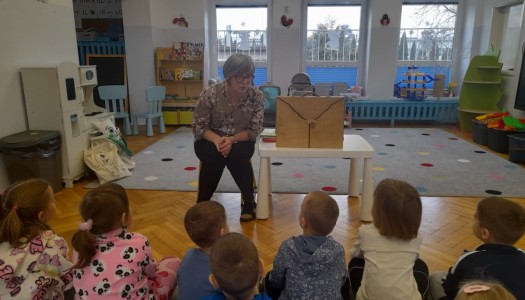 Dzisiaj Nasze przedszkole odwiedził wyjątkowy gość – Pani z Biblioteki, która zabrała nas w podróż do świata wyobraźni za pomocą teatrzyku....